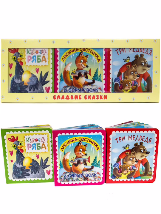 Книжки с любимыми сказками в наборах, похожих на коробки конфет, станут "сладким" подарком малышам! Замечательные иллюстрации, мини-формат книг, нежные, приятные цвета наборов создают прекрасное впечатление, никого не оставляя равнодушным!