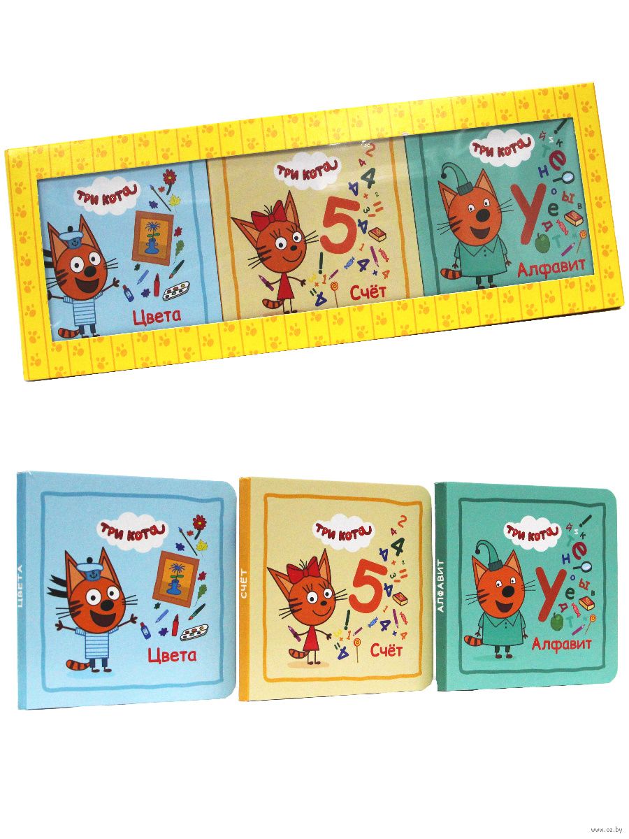 Котята Коржик, Компот и Карамелька постоянно попадают в неприятности, но благодаря смекалке и взаимовыручке им удается выпутаться из самых непростых историй. В этом наборе три мини-книжки для раннего развития с героями популярного мультсериала "Три кота": "Алфавит", "Счет" и "Цвета", благодаря которым малыши познакомятся с буквами, научатся считать и различать основные цвета. Красочные иллюстрации, качественная полиграфия и, конечно, любимые персонажи мультфильма – вот непременные условия интереса ребенка к книге. Это комплект станет одновременно приятным и полезным подарком для малышей.