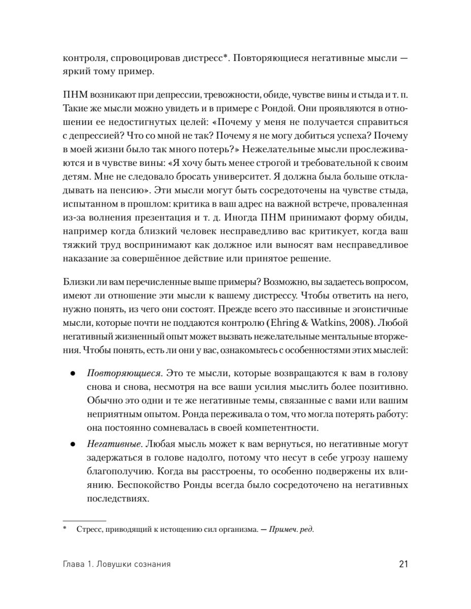Проверенный эффективный подход КПТ, который поможет вам разорвать порочный круг повторяющегося негативного мышления. Если вы страдаете от тревоги или депрессии, скорее всего, вы также испытываете нежелательные, тревожные и повторяющиеся мысли. Эти негативные мысли часто основаны на гневе, вине, стыде, беспокойстве, унижении, негодовании или сожалении. И чем больше вы пытаетесь получить контроль над этими мыслями, тем больше они, кажется, выходят из-под вашего контроля. Итак, как вы можете вырваться из этой обреченной на провал "ловушки разума" и испытать прочный покой и облегчение? Книга предлагает пошаговую программу, которая поможет вам ориентироваться и эффективно справляться с негативными образцами мышления. Основанное на эффективных стратегиях когнитивно-поведенческой терапии (КПТ), это практическое руководство описывает трансдиагностический подход к управлению мыслями, которые вызывают ваше эмоциональное расстройство и угрожают вашему психическому здоровью и благополучию. Вы не обречены на жизнь, полную постоянных, хаотичных или тревожных мыслей. Если вы готовы укрыться от бури в своей голове, простые действия помогут вам получить контроль над своими циклами негативного мышления.