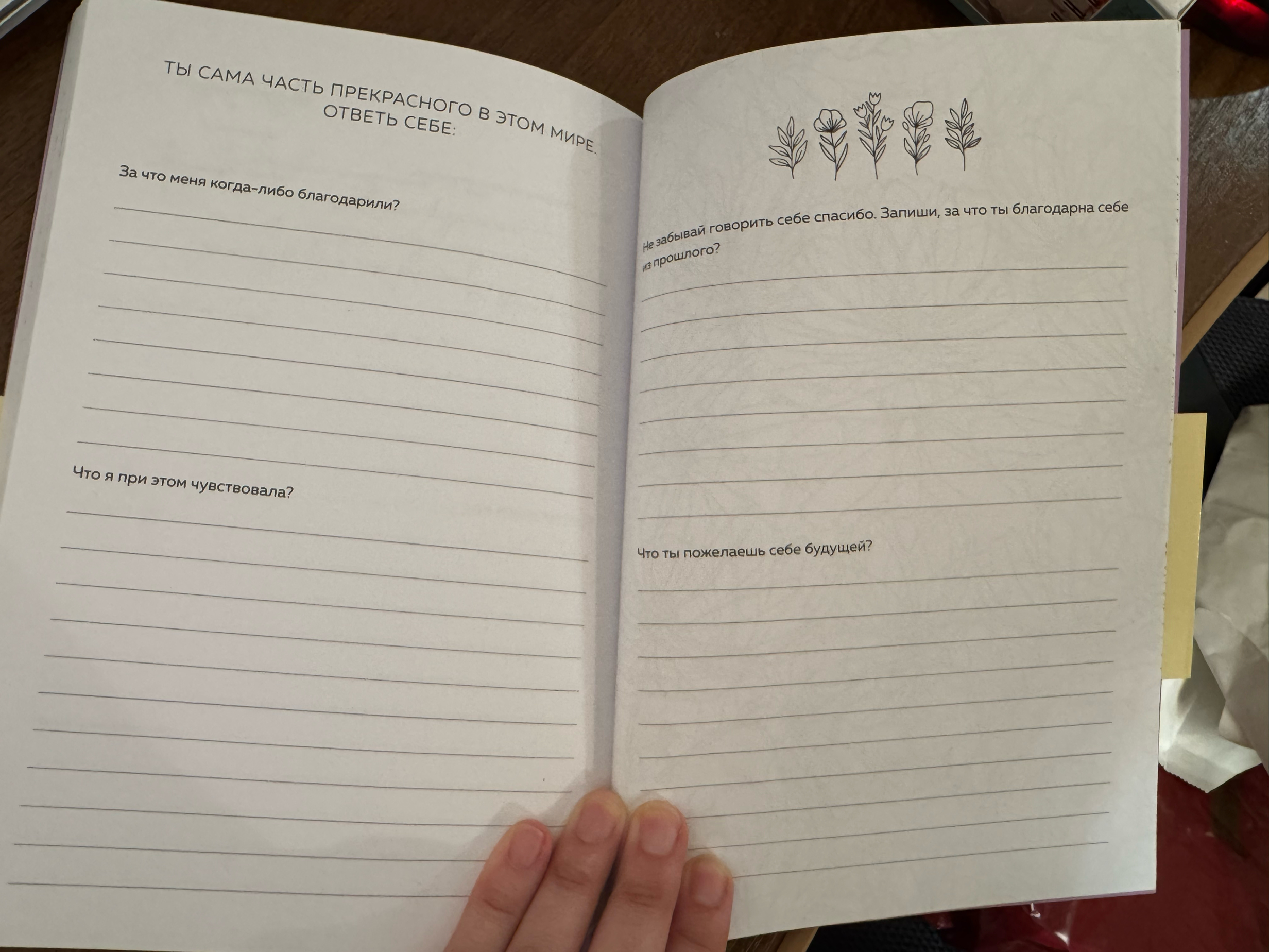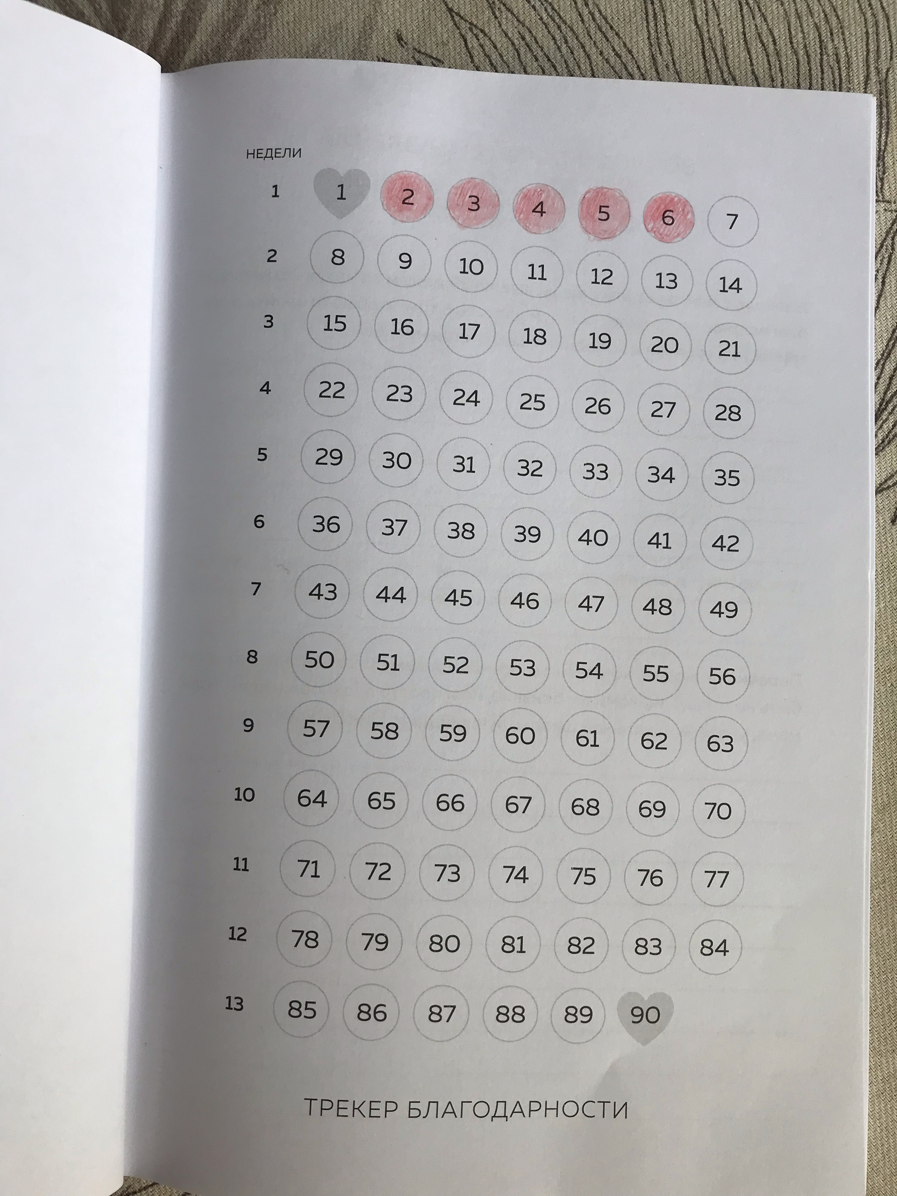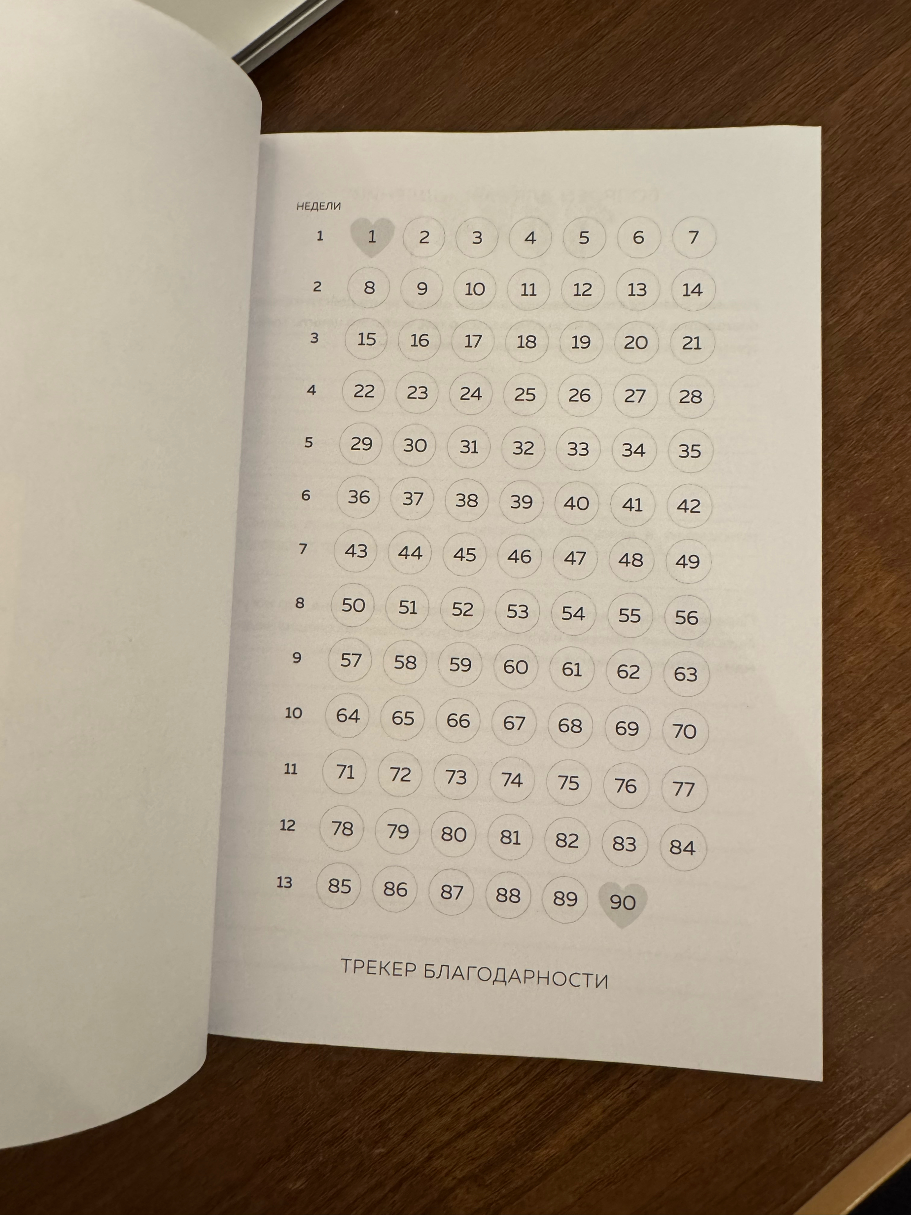 Аккуратный, минималистичный, с красивым оформлением. Есть несколько разделов: - основной, для записи ежедневных благодарностей, - вопросы для размышления, - благодарности, которые говорили тебе, - список приятных мелочей, - даже разукрашка :) Качественная плотная бумага. Антистресс и приятные эмоции обеспечены :) не терпится начать :)