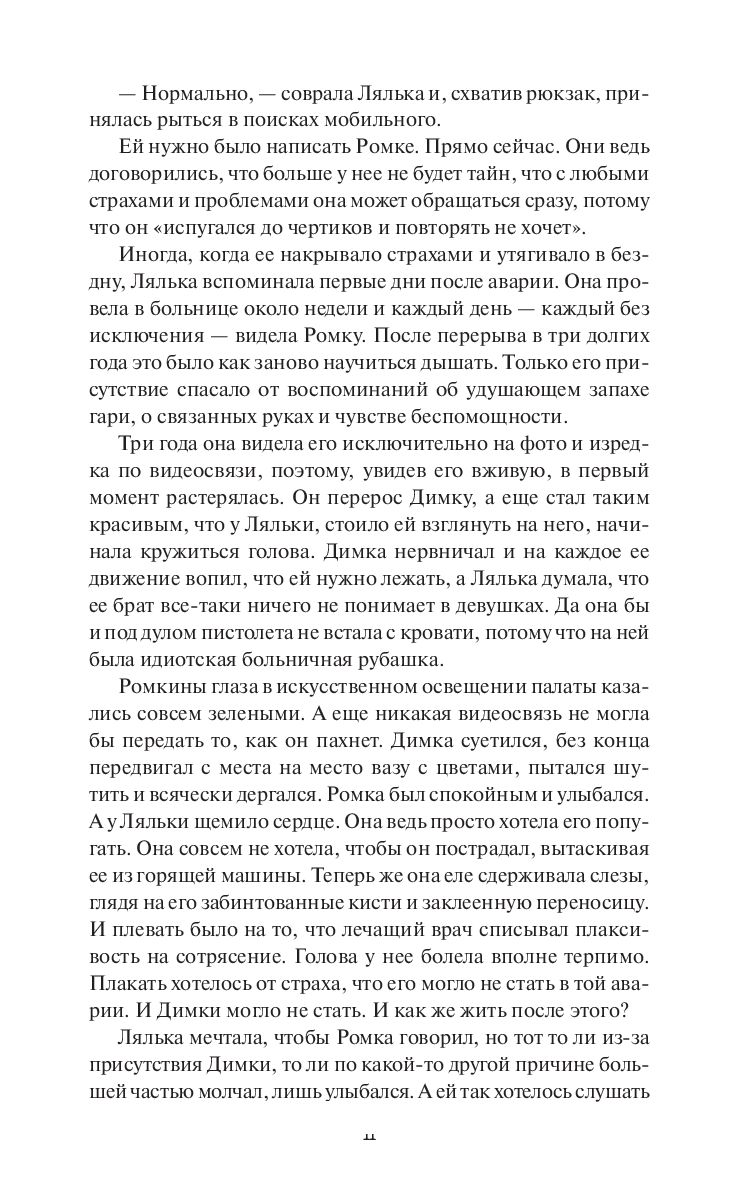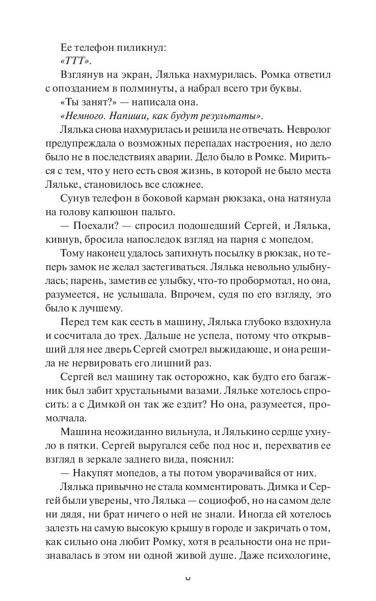 Со стороны может показаться, будто у нее есть все, о чем может мечтать девочка-подросток. Но на самом деле ей нужно лишь одно: чтобы парень, которого она любит всю свою жизнь, ответил ей взаимностью. Только сердце Ромы занято, и, судя по всему, у них с Машей все серьезно. Неужели Лялька так и останется для него всего лишь младшей сестренкой друга? Нет, она ждала слишком долго, чтобы так просто сдаться. Лялька, Роман, Маша и Димка – каждый из них готов бороться за свое счастье, не подозревая, что впереди их ждет новая, гораздо более опасная угроза.