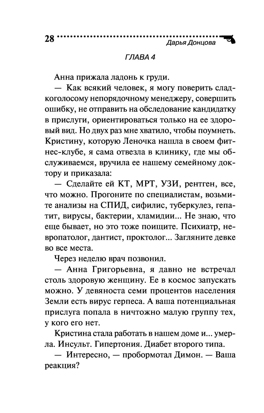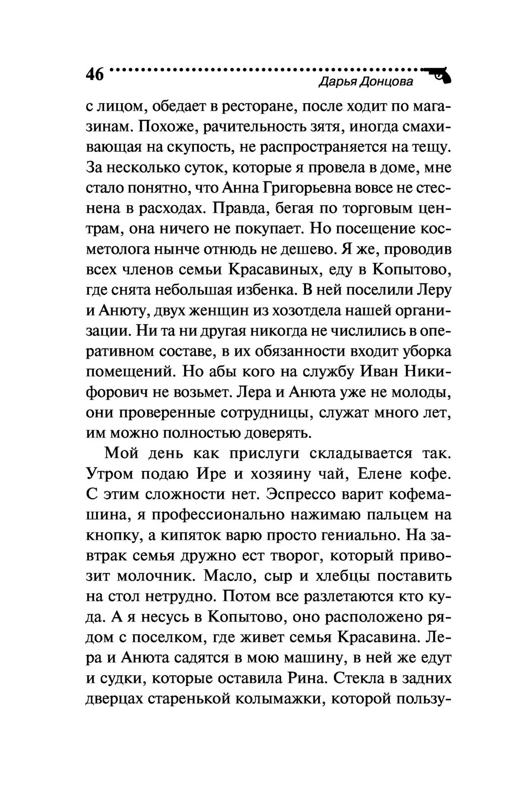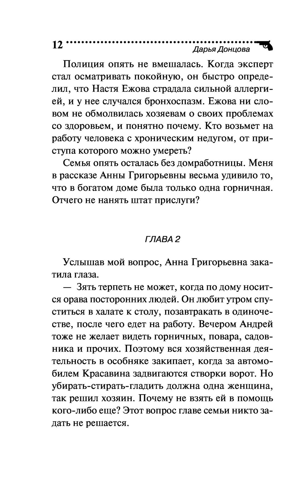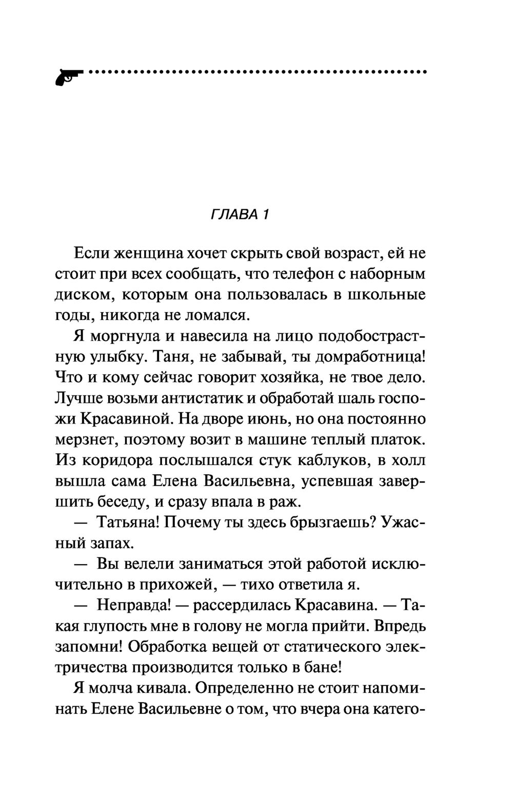Три девицы вечерком отравились все чайком... Возможно, это было бы смешно, если бы не было так грустно. В элитном особняке богатого предпринимателя Андрея Красавина одна за другой скончались три домработницы. Надя от инсульта, Настя от астмы, а крепкая и здоровая, как космонавт, Кристина – от инсульта и диабета в придачу. Выяснилось, что девушки в последнее время баловали себя ароматным цветочным чайком из большой банки, невесть откуда взявшейся. Теща Красавина, Анна Григорьевна Шляхтина-Энгельман, примчалась к Татьяне Сергеевой и стала умолять ее разобраться во всей этой чертовщине. Чтобы не спугнуть злоумышленника и не привлечь лишнего внимания, Таня решила внедриться в дом Красавина под видом очередной домработницы... Начальница особой бригады и не подозревала, какие скелеты она обнаружит в шкафах этого семейного гнездышка!