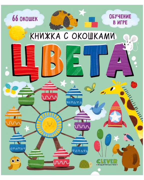 Под окошками прячутся лягушки и черепашки, котята и мышата, яблоки и груши, пирожные, конфеты – и у всего и всех есть свой цвет! Помогайте малышу запоминать базовые оттенки: