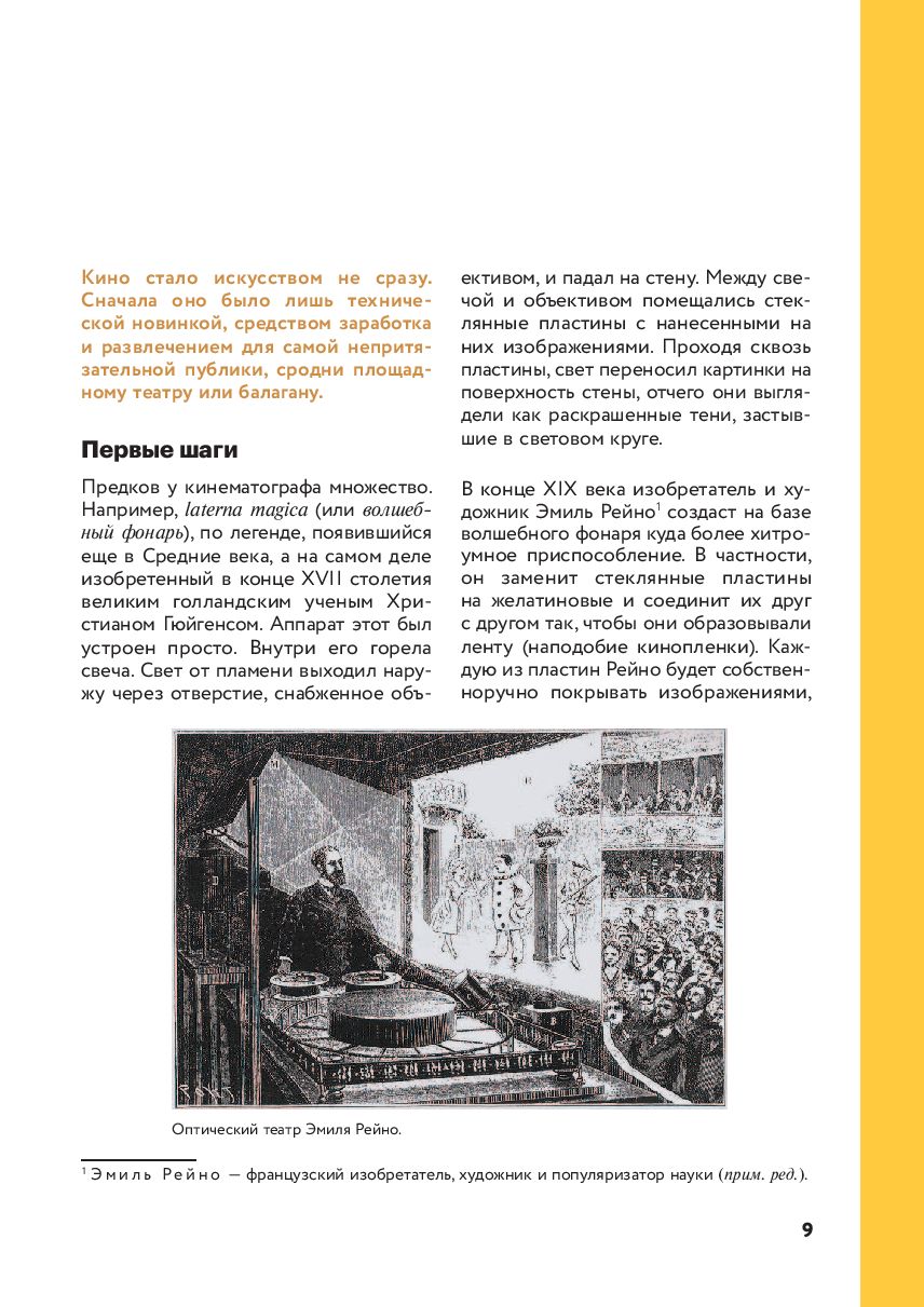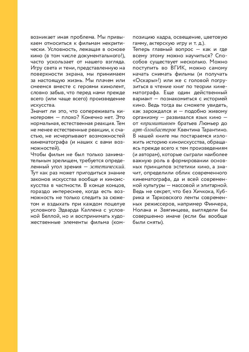 Чтение этой книги поможет разобраться в основных принципах киноискусства, позволит научиться анализировать фильмы и понимать язык кино. Это не просто история кино, это путешествие в мир искусства, которое поможет увидеть фильмы с другой стороны и насладиться ими еще больше.