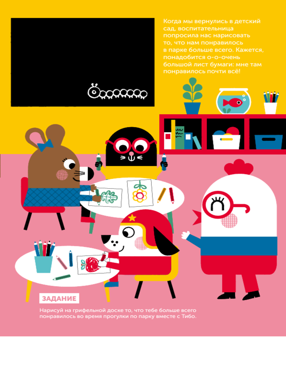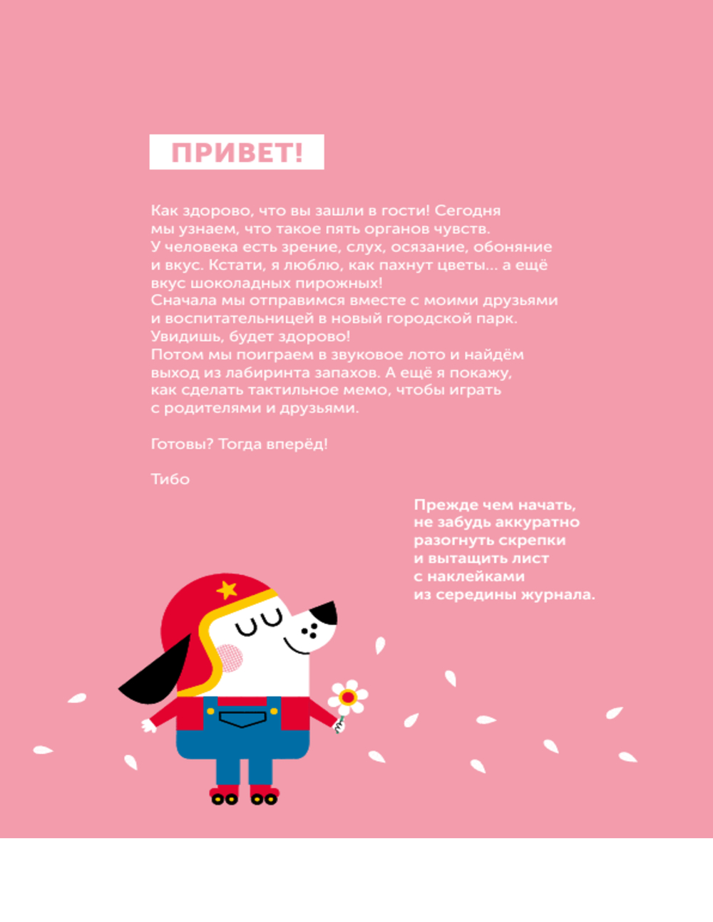 Большая история этого выпуска – оригинальное творение Авроры Пети и Матиса, очень талантливого дуэта авторов-иллюстраторов. Что касается игр, большое лото звуков, которые нужно вырезать, лабиринт, мини-игры вокруг чувств и большое "ищи и найди": сможешь ли ты найти 3 элемента, которые шумят в ландшафте, 2 детали, которые сладкие, и 3, которые плохо пахнут?