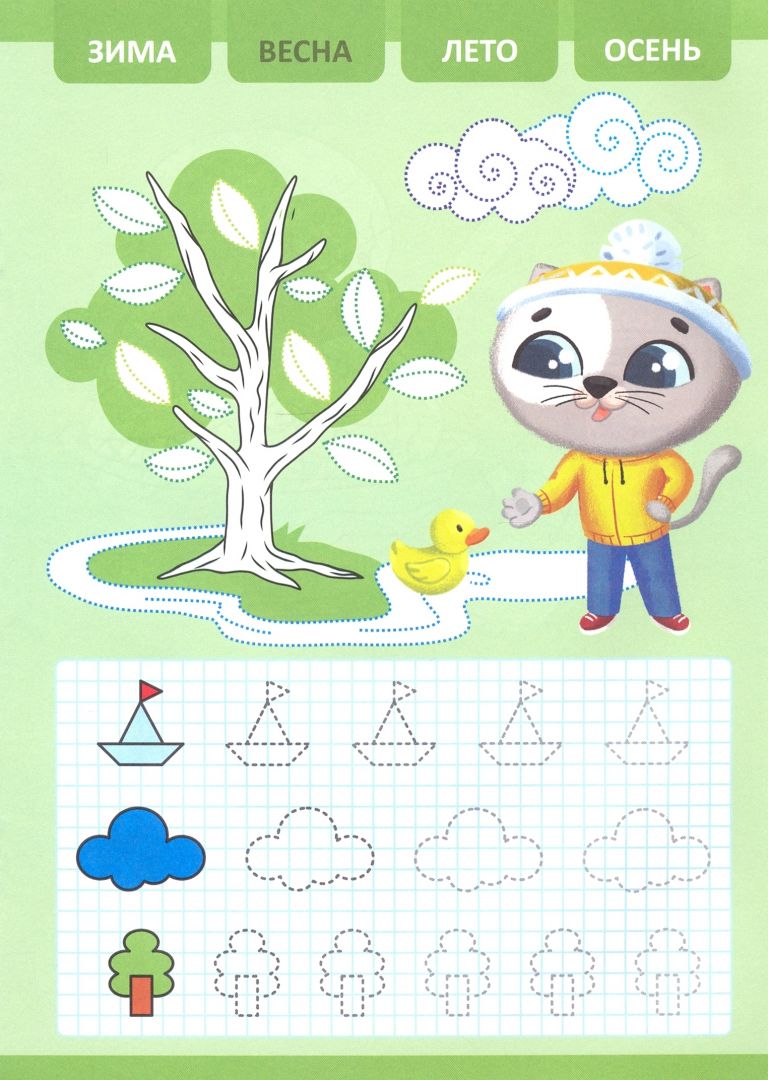 Новые прописи помогут малышу подготовить руку к письму, развить внимание и аккуратность, а иллюстрации с милым котёнком Пухом сделают процесс рисования интересным и нескучным!