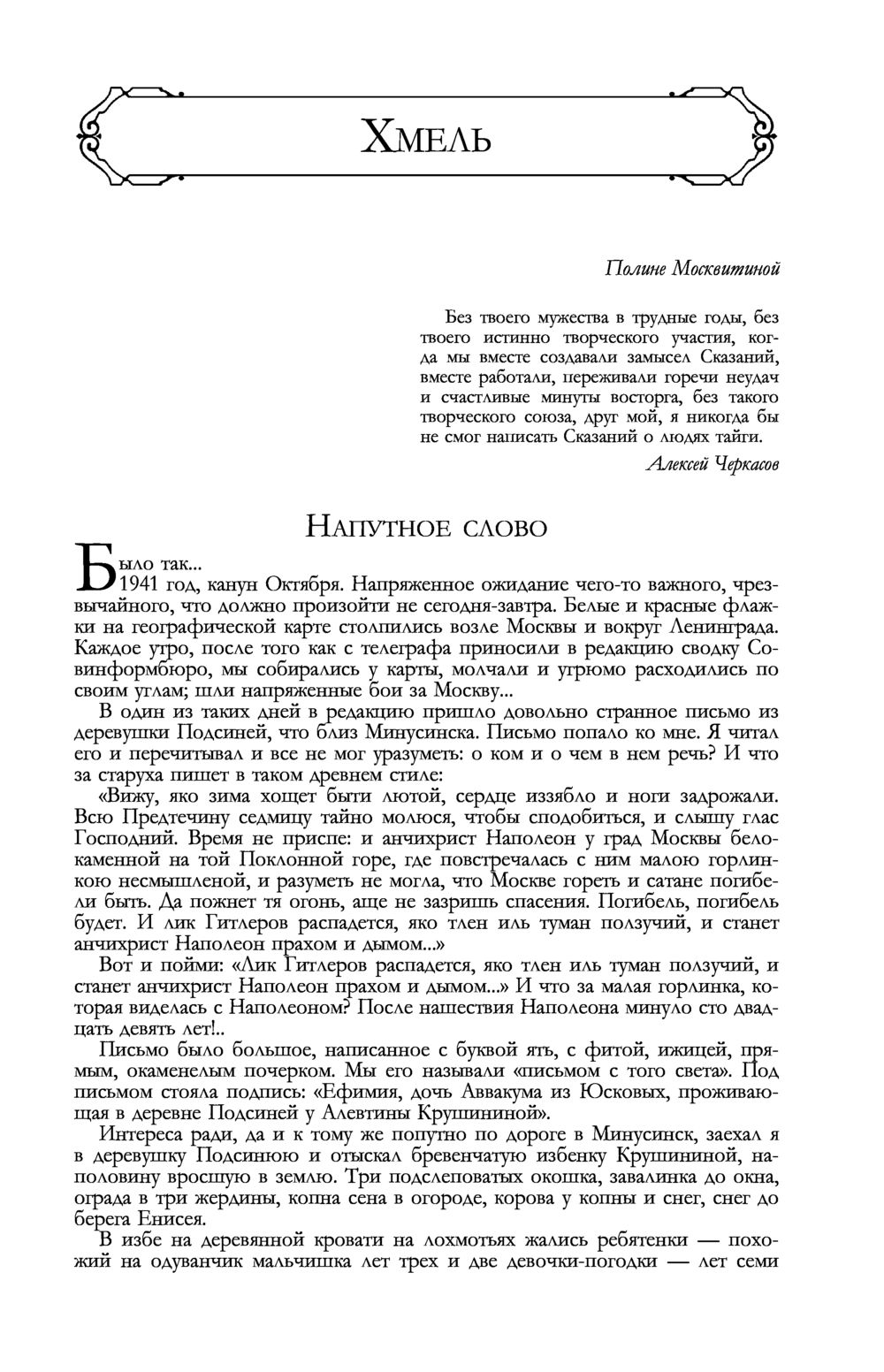 В книгу входит трилогия Алексея Черкасова и Полины Москвитиной "Сказания о людях тайги".