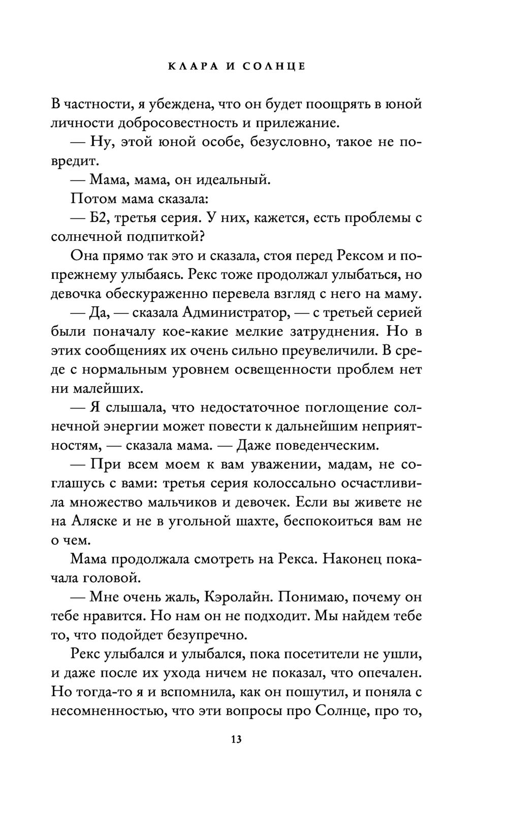 Новая ИП Клара отправляется в дом к болезненной девочке Джози и посвящает себя заботам о подростке. Джози неудачно прошла форсирование. Она слабеет с каждым днем, и Клара решает действовать. Ей предстоит добраться до сарая, в котором отдыхает Солнце, и заключить с небесным светилом сделку. Или же по желанию Мамы досконально изучить Джози и заменить ее.