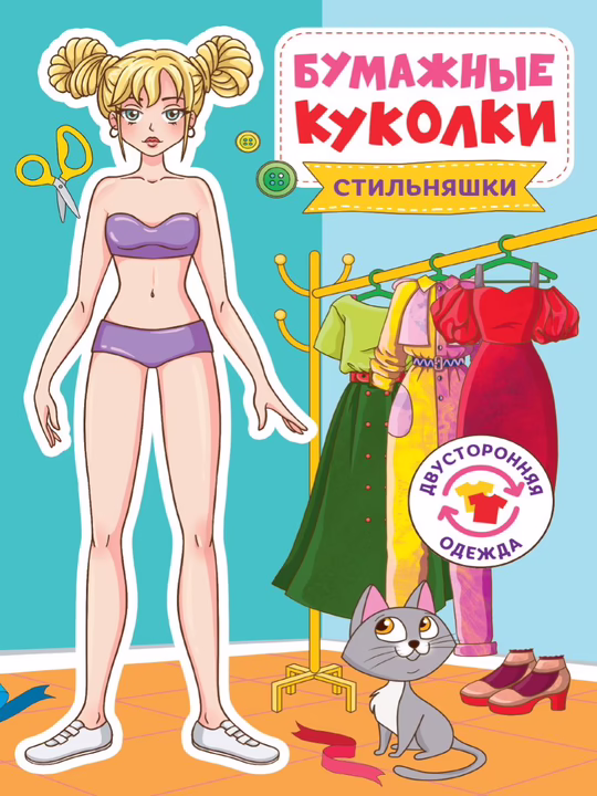 Бумажные куколки – это находка для маленьких модниц! В комплекте идут целых две куклы, которые ребенок сможет наряжать по своему вкусу. Самое приятное – вся одежда двусторонняя, а это значит, что комплектов стало в 4 раза больше! Благодаря удобному формату брошюру можно взять с собой в путешествие, она не займет много места, зато ваша малышка весело проведет время и точно не будет скучать!