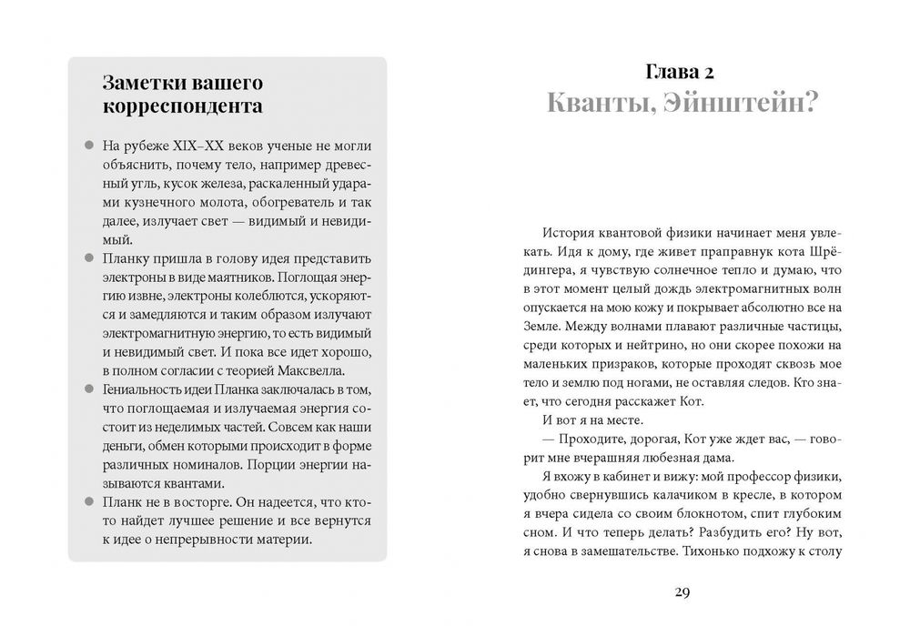 Распутать этот клубок – хотя бы частично – нам поможет... кот. И не просто кот, а прямой потомок самого известного в истории науки кота, который поучаствовал в мысленном эксперименте Эрвина Шрёдингера и постиг тайны квантовой физики. С юмором и чисто кошачьей непосредственностью нам расскажут об этой загадочной науке и об ученых, чьи открытия в начале XX столетия перевернули наши представления о Вселенной.