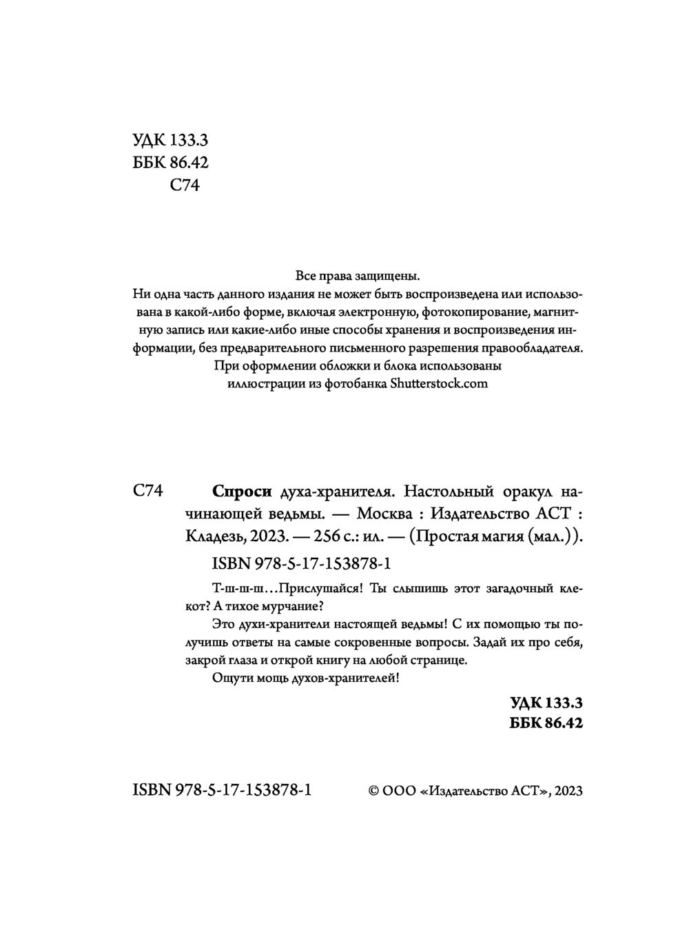Это духи-хранители настоящей ведьмы! С их помощью ты получишь ответы на самые сокровенные вопросы. Задай их про себя, закрой глаза и открой книгу на любой странице. Ощути мощь духов-хранителей!