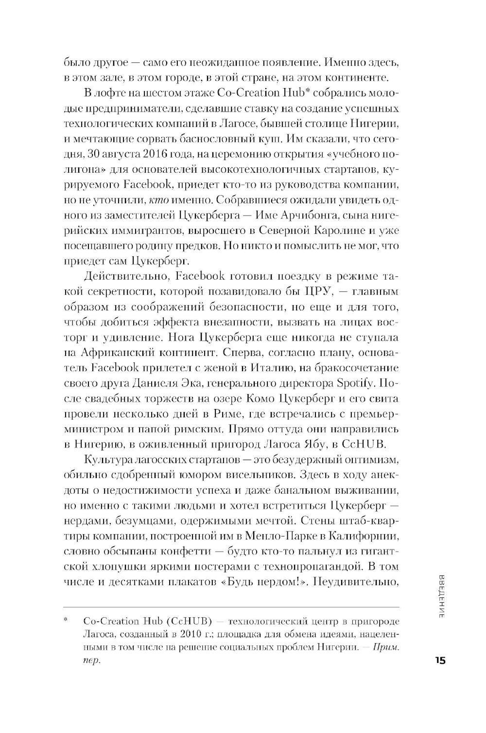 Сюжет о том, как молодой студент Гарварда придумал крупнейшую социальную сеть в мире, уже вошел в учебники по предпринимательству. Могущество и вездесущность компании Марка Цукерберга, которую в 2021 году он переименовал в Meta, невозможно отрицать. Как и за счет чего стартап стал корпорацией стоимостью более триллиона долларов? Известный журналист Стивен Леви три года общался с сотрудниками Facebook, включая самого Цукерберга и операционного директора Шерил Сэндберг, чтобы рассказать самую полную историю компании из Пало Альто. Его книга – о невероятных успехах и фатальных неудачах, о бесконтрольной власти и шокирующих методах работы, об амбициях и идеализме людей, чей продукт изменил интернет и поставил под угрозу идею анонимности. Она о том, как шаг за шагом компания становилась частью нашего мира и что произошло, когда ей это удалось.
