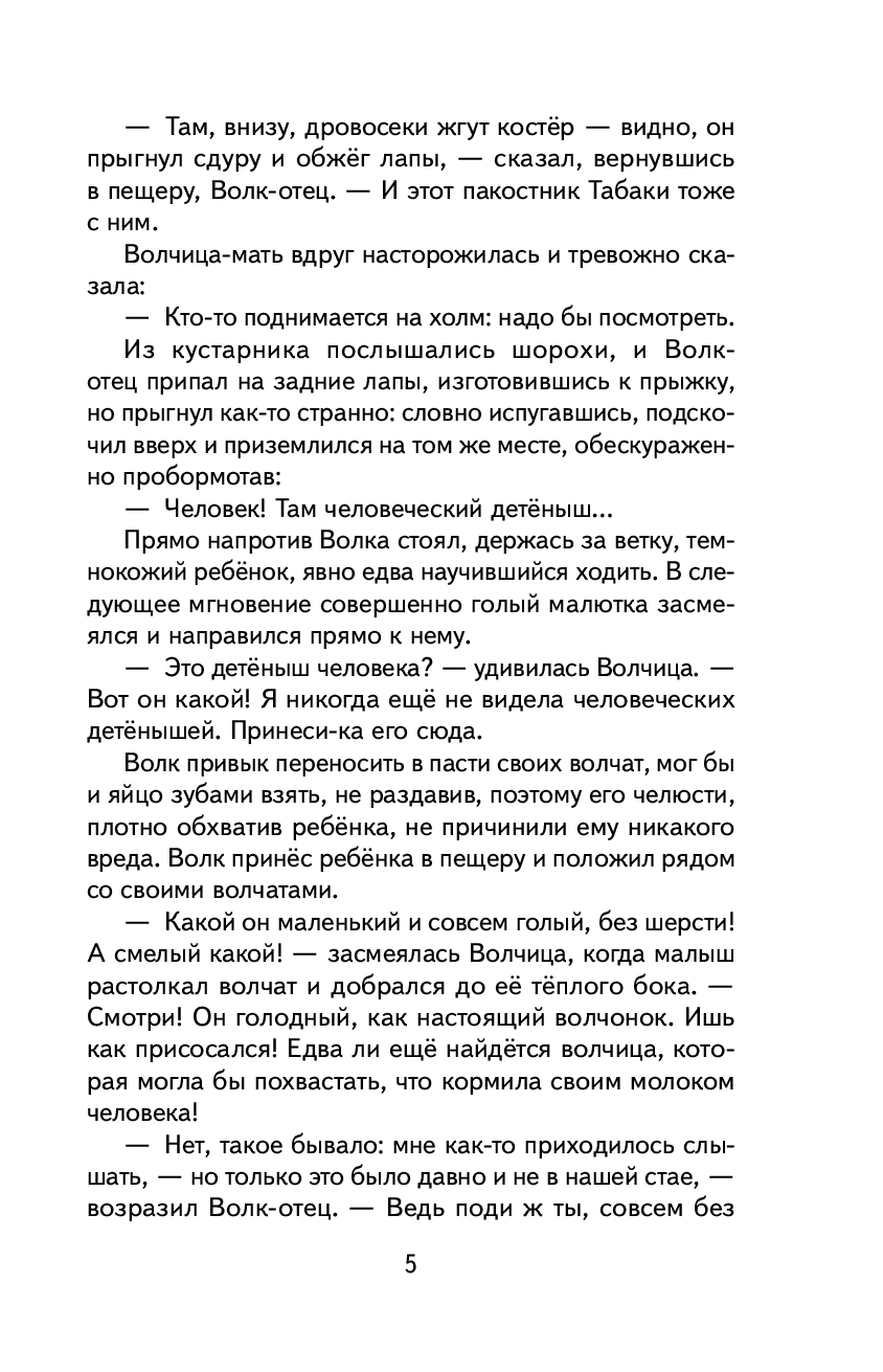 Однажды тёплой ночью у волчьего логова появился человеческий детёныш. Ребёнок, который навсегда изменил привычный уклад жизни, установленный в джунглях с незапамятных времён. Со временем джунгли стали для него вторым домом, где он обрёл семью и друзей, а обитатели научили его главному Закону Джунглей: "Мы с тобой одной крови".