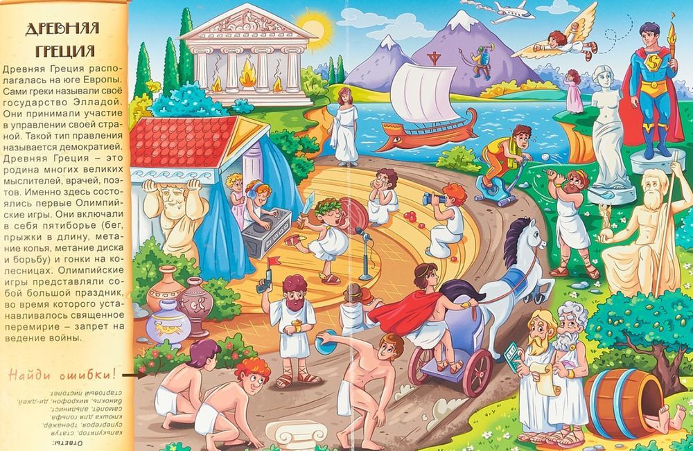 Просто открой книгу и ты побываешь в Древнем Египте, Древнем Китае, Древнем Риме и даже сможешь увидеть первобытных людей! Разглядывать яркие забавные картинки с множеством деталей понравится не только детям, но и взрослым.