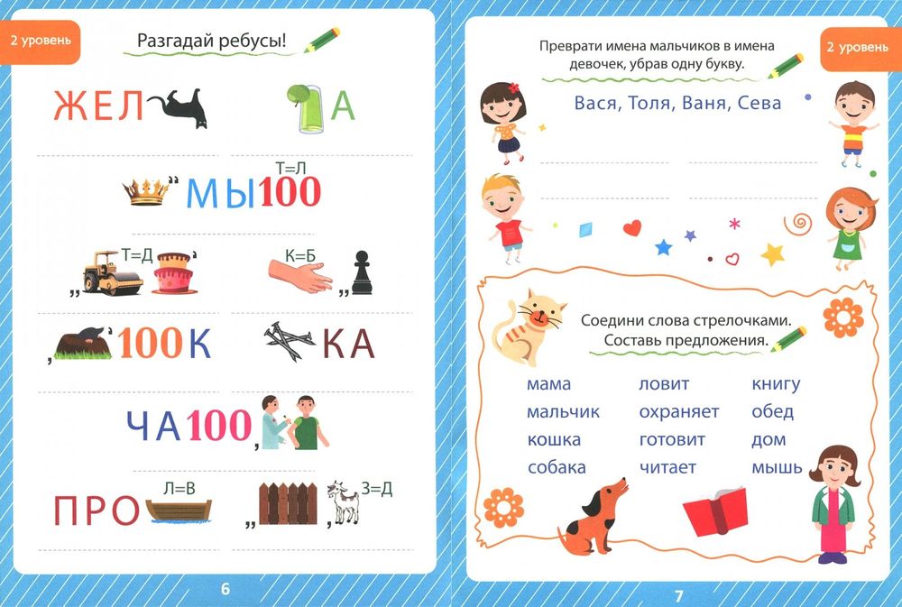 Целых 85 ребусов и заданий ждут малыша под красочной обложкой! В брошюрах четыре уровня сложности, правила решения ребусов вы найдёте на первой странице, а в конце сможете увидеть ответы на все задания.
