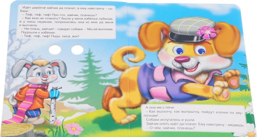Забавные зверюшки с вращающимися глазками и красочные иллюстрации непременно порадуют вашего малыша. Русская народная сказка в обработке А.Н. Афанасьева "Заюшкина избушка" с крепкими картонными страницами не оставит вашего ребенка равнодушным.