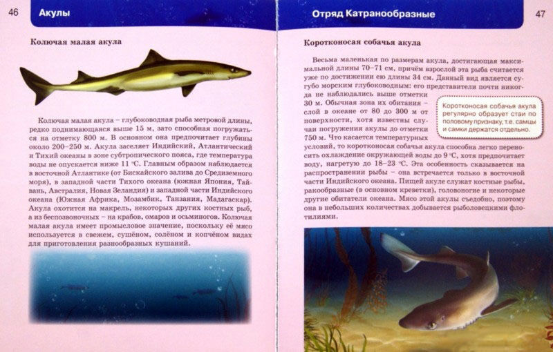 Интересная информация, занимательные факты, яркие иллюстрации, широкий круг тем – всё это вы найдёте в данной энциклопедии! Вы узнаете, как выглядит бородатый воббегонг, сколько акулы могут прожить без воды, какую акулу описывал в своей повести Кир Булычёв и многое другое. Такой подарок обязательно заинтересует ребёнка, да и взрослые непременно откроют для себя что-то новое!