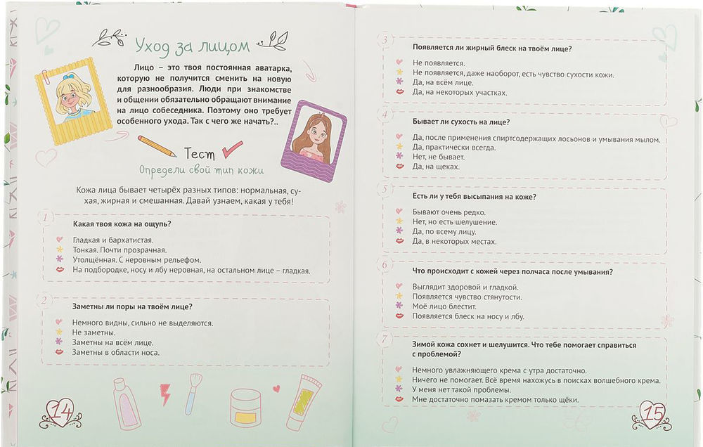Эта книга научит тебя быть самой красивой! Ты узнаешь, как ухаживать за своей кожей лица и тела, как делать нюдовый макияж, как укладывать волосы, какие упражнения выполнять, чтобы держать себя в форме, и что есть, чтобы чувствовать себя здоровой. Также в энциклопедии ты найдёшь увлекательные тесты и ответы на все волнующие вопросы о красоте!