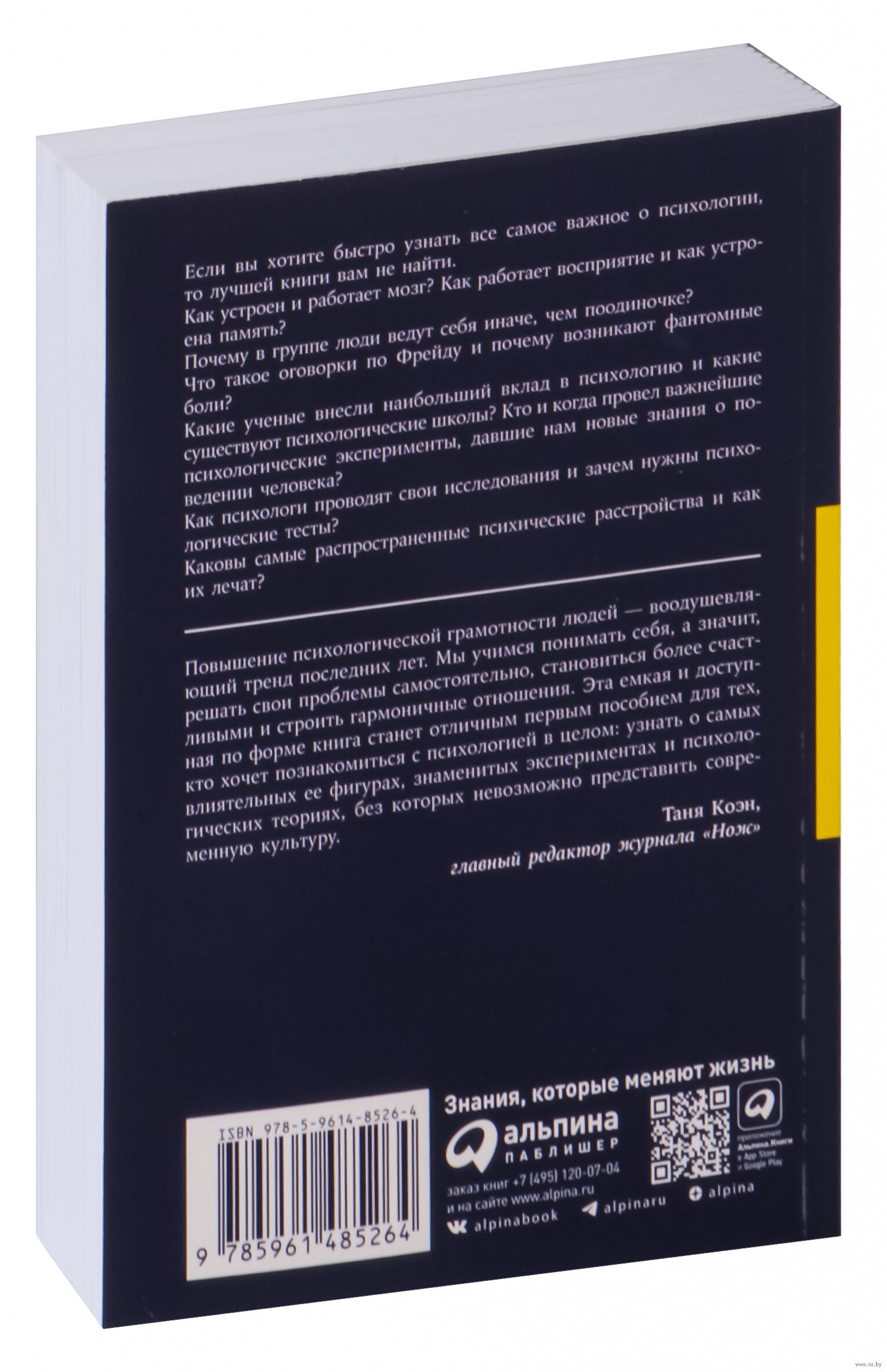 Книга открывается краткой историей психологии и рассказывает о дисциплинах, профессиях, экспериментах и видах терапии. Вы узнаете, что такое оговорки по Фрейду, почему возникают фантомные боли и почему в группе люди ведут себя иначе, чем поодиночке.