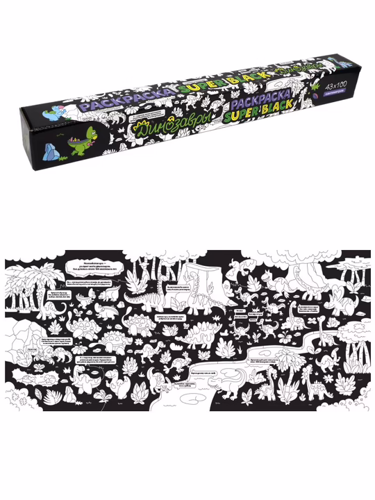 Эта раскраска-плакат вам точно понравится! Благодаря большому формату вы легко сможете раскрашивать её всей семьёй, а на чёрном фоне все рисунки будут выглядеть ещё ярче и интереснее! И совсем не страшно, если где-то вы вышли за края рисунка – этого не будет видно! Кроме того, внутри вы найдёте множество интересных фактов о материках, океанах и событиях, которые происходят на нашей удивительной планете. Что может быть лучше, чем познавать новое, развлекаясь? Когда закончите своё творение, можете повесить на стену и любоваться!