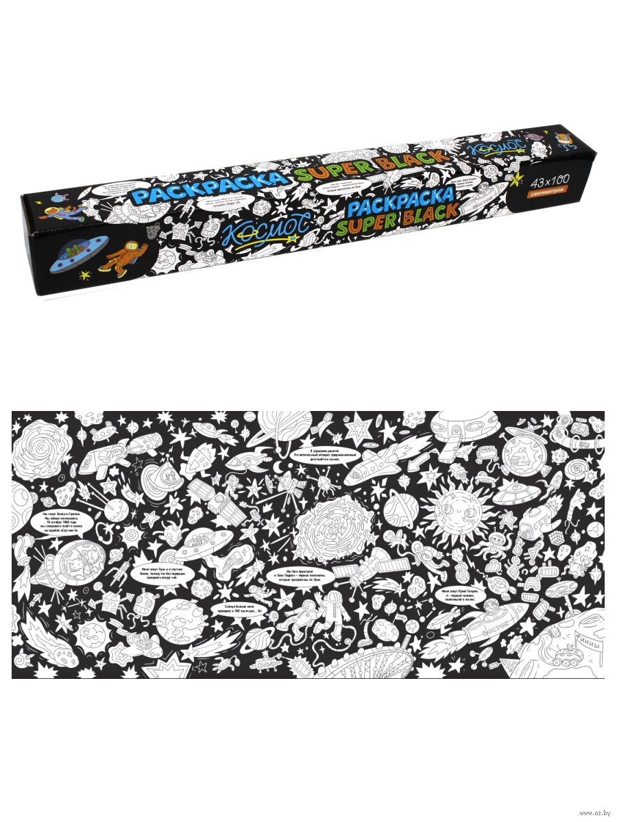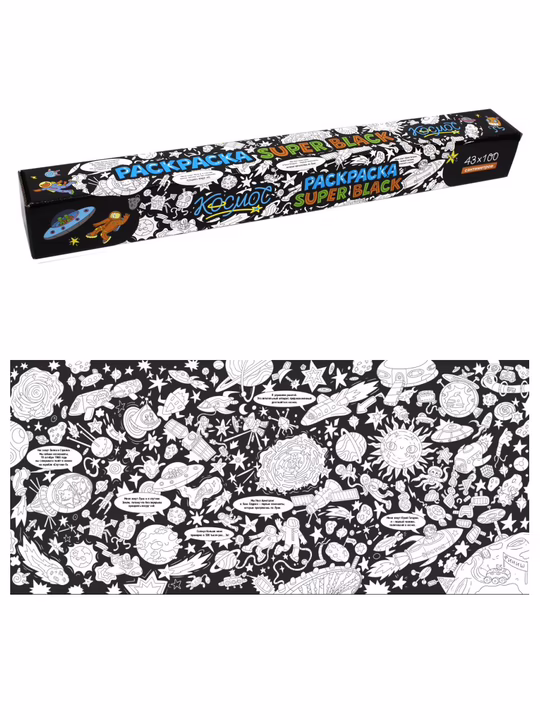 Эта раскраска-плакат вам точно понравится! Благодаря большому формату вы легко сможете раскрашивать её всей семьёй, а на чёрном фоне все рисунки будут выглядеть ещё ярче и интереснее! И совсем не страшно, если где-то вы вышли за края рисунка – этого не будет видно! Кроме того, внутри вы найдёте множество интересных фактов о материках, океанах и событиях, которые происходят на нашей удивительной планете. Что может быть лучше, чем познавать новое, развлекаясь? Когда закончите своё творение, можете повесить на стену и любоваться!