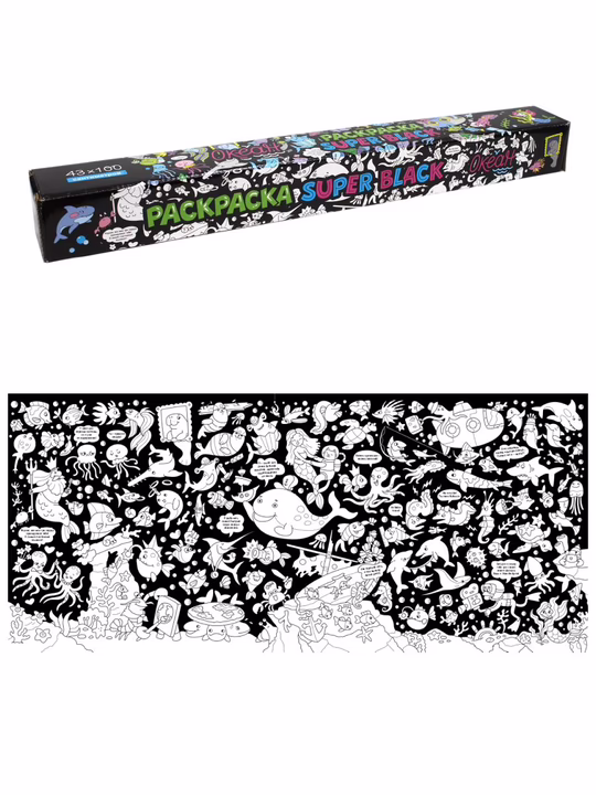Эта раскраска-плакат вам точно понравится! Благодаря большому формату вы легко сможете раскрашивать её всей семьёй, а на чёрном фоне все рисунки будут выглядеть ещё ярче и интереснее! И совсем не страшно, если где-то вы вышли за края рисунка – этого не будет видно! Кроме того, внутри вы найдёте множество интересных фактов о материках, океанах и событиях, которые происходят на нашей удивительной планете. Что может быть лучше, чем познавать новое, развлекаясь? Когда закончите своё творение, можете повесить на стену и любоваться!
