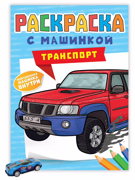 Раскраска с машинкой – отличный подарок для каждого мальчишки, увлекающегося транспортом. Интересные раскраски и инерционная машинка в комплекте доставят радость любому читателю! Такой комплект подойдет юному художнику и порадует разнообразными картинками для творческих занятий.