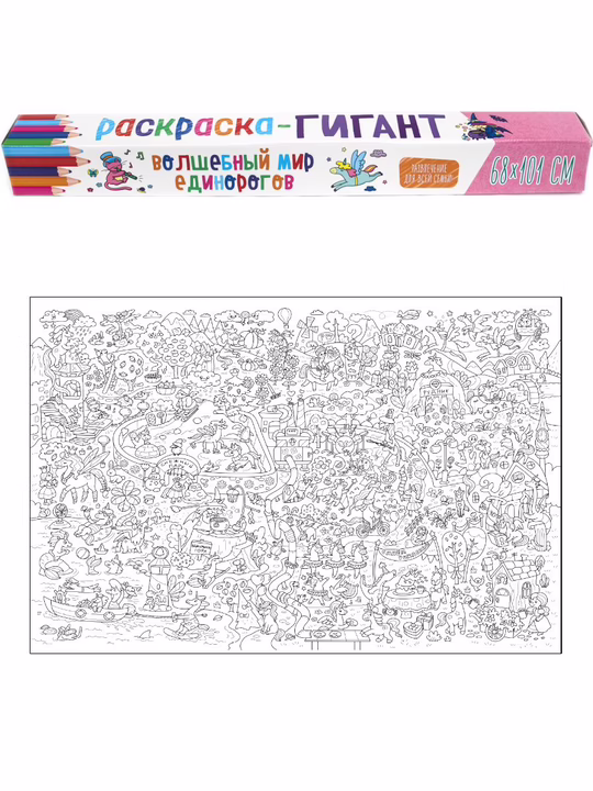 "Раскраска-гигант" – настоящее приключение для всей семьи. Благодаря размеру картинку смогут раскрашивать сразу несколько человек. Ламинированная основа позволит делать это даже на ковре. С помощью клеевых креплений раскрашенный плакат удобно повесить на стену и любоваться своим шедевром! Вместе с персонажами раскраски вы можете окунуться в удивительный мир космоса, динозавров, милых зверят или отправиться в путешествие вокруг света. "Раскраска-гигант" надолго увлечёт и ребёнка, и родителей.