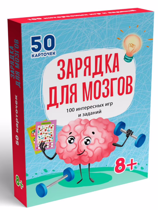 Набор карточек "Зарядка для мозгов" не даст соскучиться вашему ребёнку в пути! 100 интересных заданий помогут вам разнообразить обычную поездку.