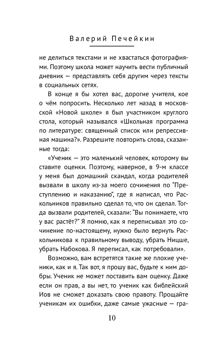 Валерий Печейкин – яркое явление в русскоязычном книжном мире: он драматург, сценарист, писатель, колумнист изданий GQ, S7, Forbes, "Коммерсант Lifestyle", лауреат премии "Дебют" в номинации "Драматургия" за пьесу "Соколы", лауреат конкурса "Пять вечеров" памяти А. М. Володина за пьесу "Моя Москва". Сборник его лекций о русской литературе "Пушкин, помоги!" – не менее яркое явление современности. Два главных качества эссе Печейкина, остроумие и отвага, позволяют посмотреть на классические произведения из школьной программы по литературе под новым неожиданным углом.