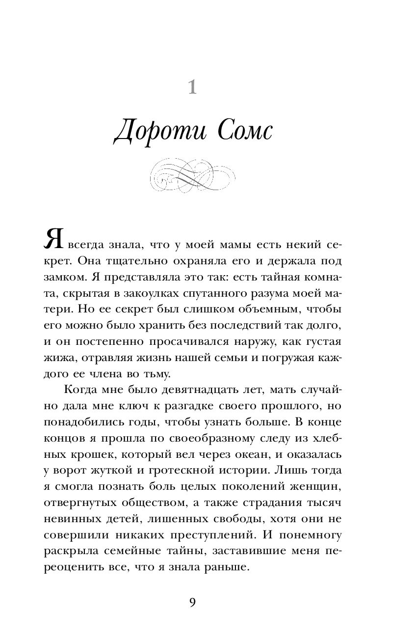 Джастин выросла в богатой семье. Отец – добропорядочный юрист. Мать – домохозяйка, у которой все всегда идеально. Соседи восхищаются ими. Особенно матерью: ее аристократическими манерами и королевским британским акцентом. Но перед смертью родителей дочь узнает о главной семейной тайне. Тайне Дороти Сомс. Кто она такая и как связана с Джастин? Теперь дочь обязана приехать в знаменитый британский приют для детей и расследовать прошлое человека, которого она никогда не знала.