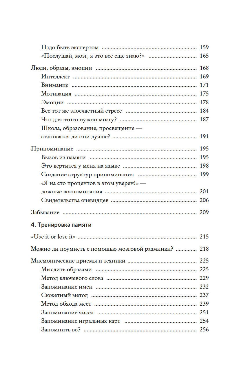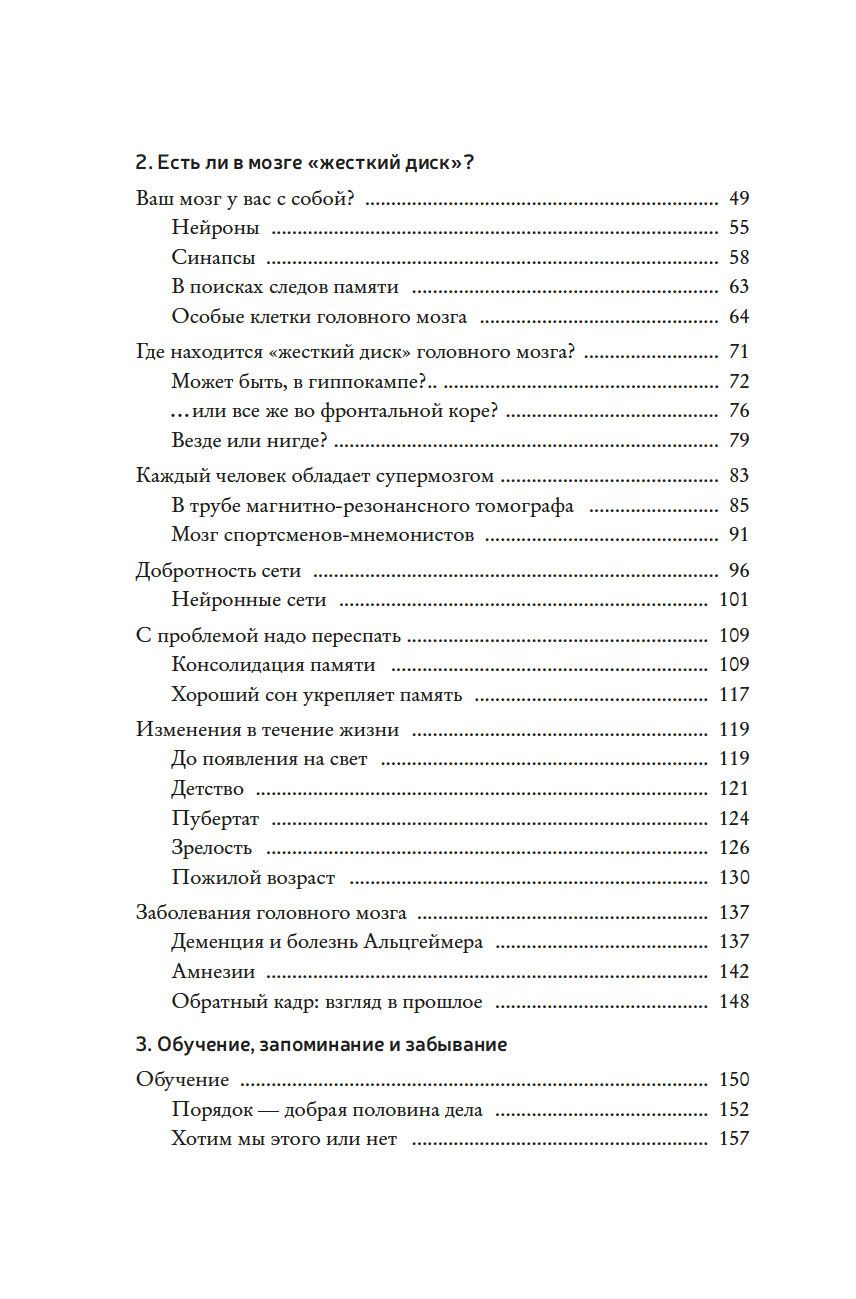 Это моя книга про память и в целом работу мозга. Она внесла ясность в работе многих процессов мозга. В этой книге всё разложено по полочкам. Всё начинается с того, что память это обобщенное понятие: в нашем мозге есть множество видов памяти, которые задействуются в разных ситуациях. Затем автор объясняет, что такое память и где она находится и как работает. Далее на основе полученных знаний рассказывается про процессы обучения, припоминания и забывания. И в конце находятся мнемотехники. Имея информацию из предыдущих глав, мы можем понять и объяснить, что и как работает в нашей памяти и мнемотехники уже не так удивляют. Даны самые популярные и эффективные мнемотехники, принципы их работы и, конечно, примеры. Прочитав эту книгу, вы будете понимать, что такое память и как с ней "подружиться". А благодаря своеобразной подаче автора, путешествие в мир памяти будет интересным и увлекательным! Если вас интересует тема развития своей памяти - эта книга обязательна к приобретению.