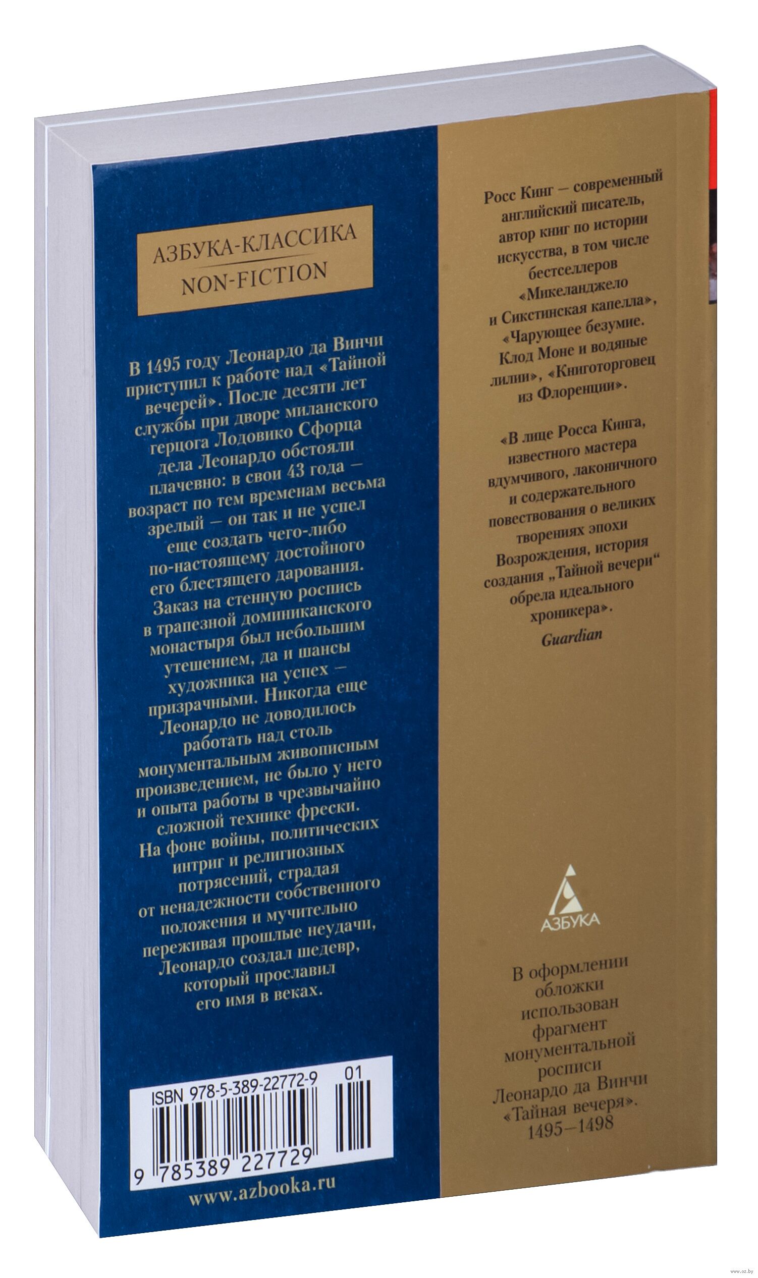 В 1495 году Леонардо да Винчи приступил к работе над "Тайной вечерей" – стенной росписью, которой суждено было стать одним из самых знаменитых и влиятельных произведений в истории мирового искусства. После десяти лет службы при дворе миланского герцога Лодовико Сфорца дела Леонардо обстояли плачевно: в свои 43 года он так и не успел еще создать чего-либо по-настоящему достойного его блестящего дарования. Заказ на стенную роспись в трапезной доминиканского монастыря был небольшим утешением, да и шансы художника на успех – призрачными. Никогда еще Леонардо не доводилось работать над столь монументальным живописным произведением, не было у него и опыта работы в чрезвычайно сложной технике фрески. На фоне войны, политических интриг и религиозных потрясений, страдая от ненадежности собственного положения и мучительно переживая прошлые неудачи, Леонардо создал шедевр, который прославил его имя в веках. Развенчивая множество мифов, окутывающих "Тайную вечерю" едва ли не с момента создания, Росс Кинг доказывает, что истинная история прославленного творения Леонардо да Винчи увлекательнее любого из них.