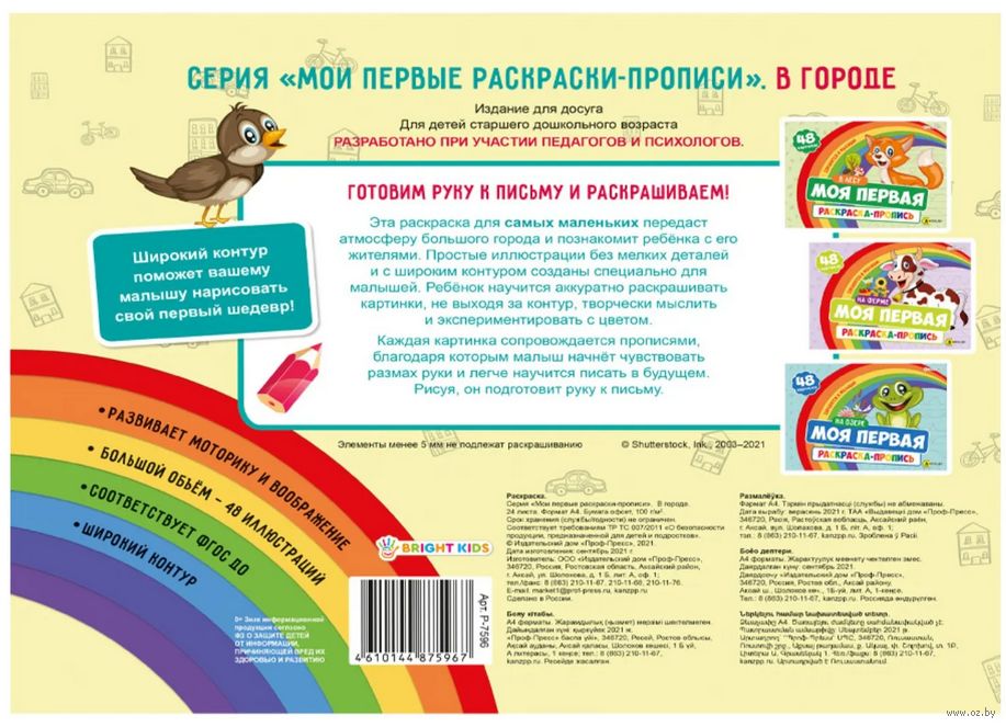 Данная серия одновременно выполняет две функции: готовит руку к письму и позволяет раскрашивать. Это изделие для самых маленьких позволит малышу на мгновение оказаться на солнечной ферме. На этих страницах оживают добрые домашние животные: поросёнок, курочка с цыплятами, дружелюбный ослик и другие. Простые иллюстрации без мелких деталей и с широким контуром созданы специально для малышей. Ребёнок научится аккуратно раскрашивать картинки, не выходя за контур, творчески мыслить и экспериментировать с цветом. Каждая картинка сопровождается прописями, благодаря которым малыш начнёт чувствовать размах руки и легче научится писать в будущем. Рисуя, он подготовит руку к письму, а также разовьёт моторику и воображение.