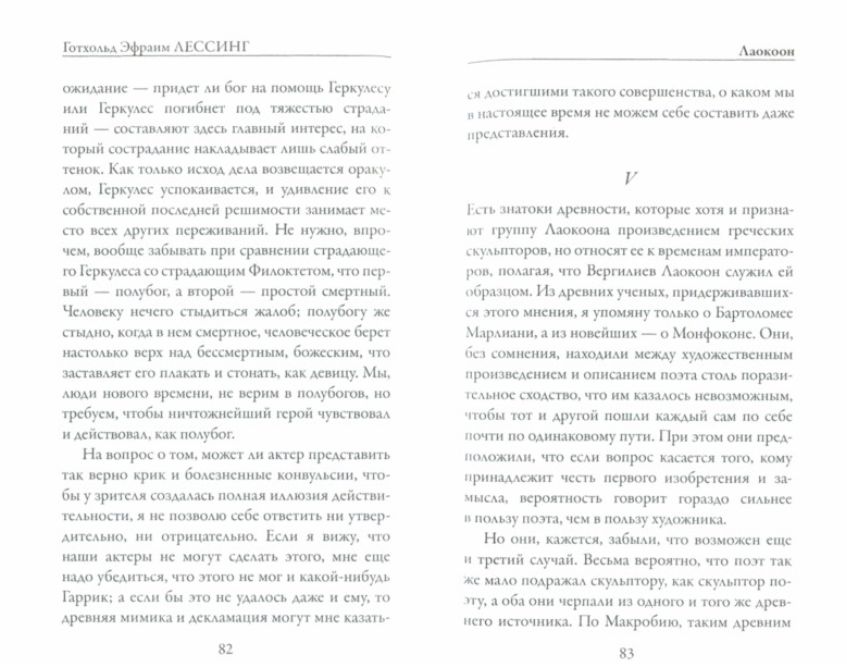 В своем важнейшем произведении Лессинг сравнивает два вида искусства – живопись и поэзию – на основе одного образа, Лаокоона. С одной стороны, Лессинг рассматривает скульптуру греческого жреца, описанную Якопо Садолето, и с другой – образ, выведенный Вергилием в Энеиде. Сопоставляя два воплощения одного образа, великий эстетик выводит возможности и границы каждого из искусств.