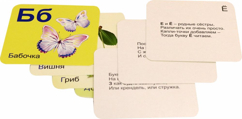 Тематические карточки "Русский алфавит" – это замечательный наглядно-дидактический комплект для обучения детей дошкольного возраста. Он включает в себя 32 карточки. С одной стороны карточки представлено изображение буквы и объект (предмет), название которого начинается с этой буквы; оборотная сторона содержит весёлое стихотворение про эту букву. Занятия с карточками позволят ребёнку быстро запомнить образ буквы и знаковое обозначение звуков с опорой на наглядность; педагогам использование комплекта обеспечит развитие и обучение дошкольников на основе принципов наглядности, доступности и дифференциации, необходимых для реализации требований ФГОС ДО.