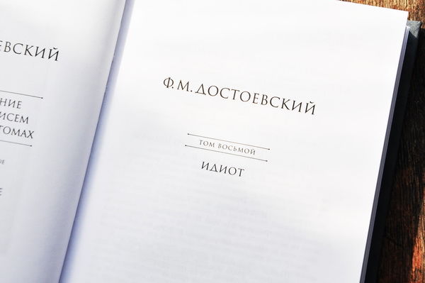 Восьмой том Полного собрания сочинений и писем Ф. М. Достоевского содержит роман "Идиот", завершённый писателем в 1868 году во Флоренции. Эта книга о "положительно прекрасном человеке" может восприниматься на контрасте с написанным двумя годами ранее "Преступлением и наказанием". Если история Раскольникова предстаёт нам на страницах романа как путь от преступления к покаянию, от тьмы к свету и подлинной жизни, то князь Мышкин, напротив, из ситуации предельного сострадания и любви к божьему миру возвращается во мрак безумия. Важной особенностью романа является то, что в нём Достоевский подробно описывает свой опыт пребывания на краю жизни и смерти после разоблачения заговора петрашевцев. Разработанные Достоевским в "Идиоте" модели персонажей послужили образцами для героев позднего творчества писателя – романов "Бесы", "Подросток" и "Братья Карамазовы".