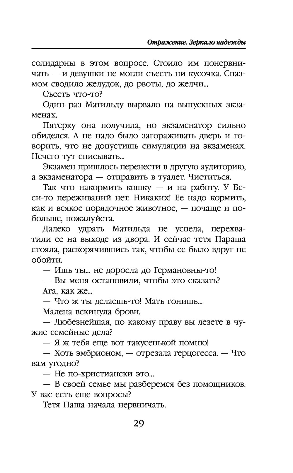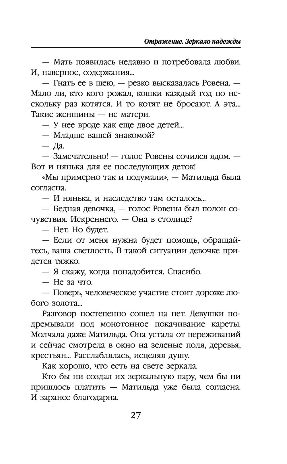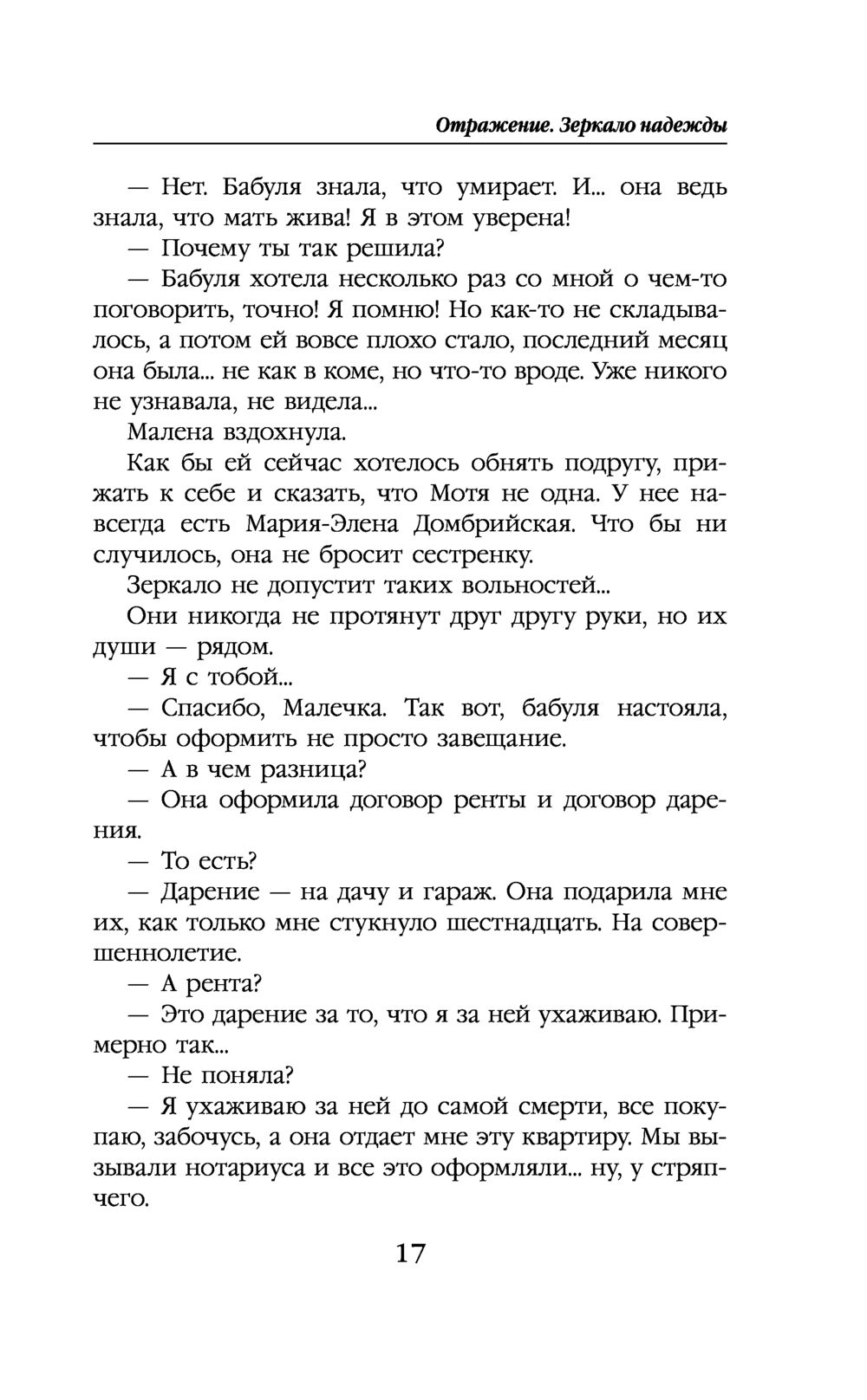 И как-то придется отбиваться, что-то решать, идти вперед... Но Матильда и Мария-Элена унывать не будут, ведь теперь они не одиноки. Спасибо тебе, зеркало, подарившее сестру – и надежду!