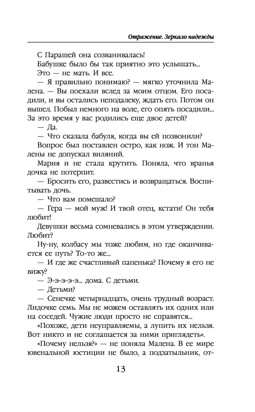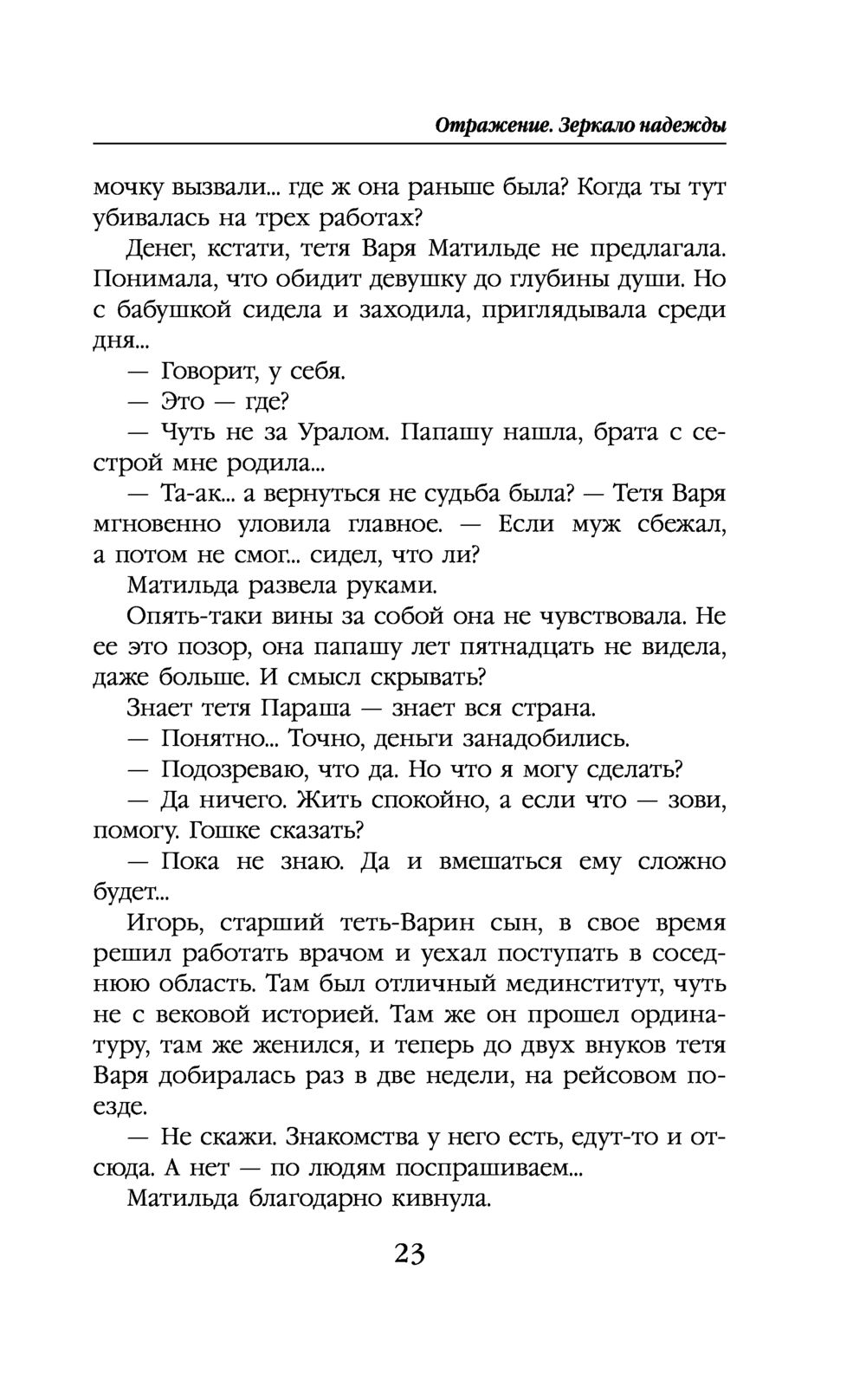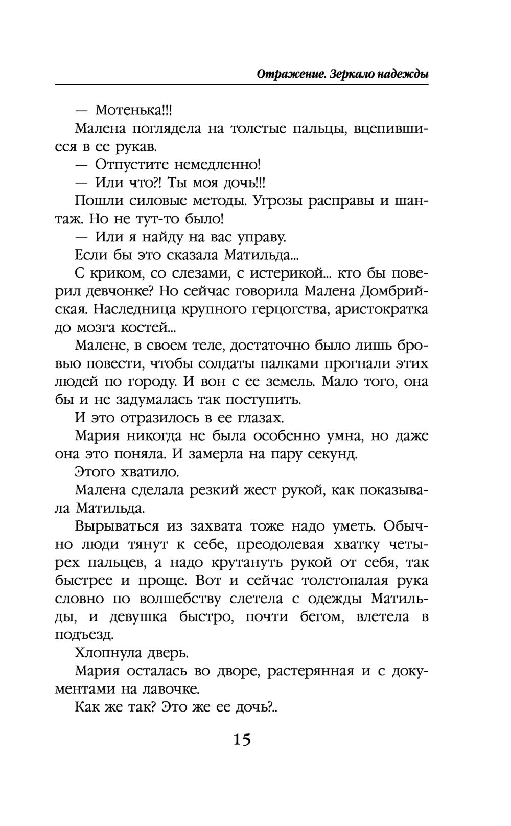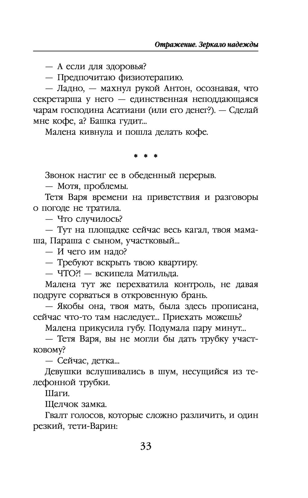 И как-то придется отбиваться, что-то решать, идти вперед... Но Матильда и Мария-Элена унывать не будут, ведь теперь они не одиноки. Спасибо тебе, зеркало, подарившее сестру – и надежду!