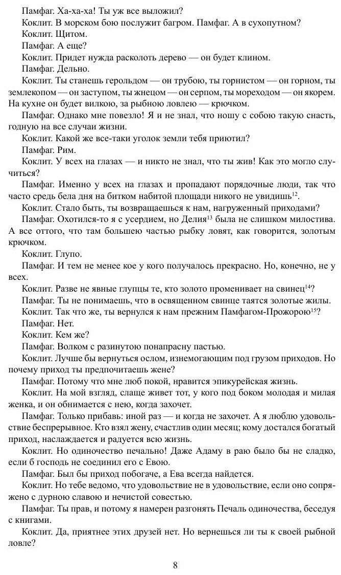 В своих "Разговорах запросто" Эразм Роттердамский (1469-1536) выявил пошлость, формализм, догматизм и отсутствие всякого разумного начала – "глупость" во всех областях жизни (политической, культурной, церковной). Наиболее резким насмешкам подверглись богословы и представители схоластики.