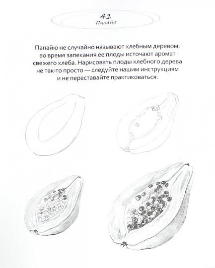 Данная книга дает прекрасную возможность приступить к развитию способностей умелого отображения окружающих нас объектов на бумаге. Начинать стоит с простейшего и одновременно знакомого – того, что мы разглядывали с самого детства. Прекрасно для этой цели подойдут фрукты, каждый контур которых мы легко можем представить себе. Это – лишь первый шаг на долгом и приятном пути развития в себе творческого начала.