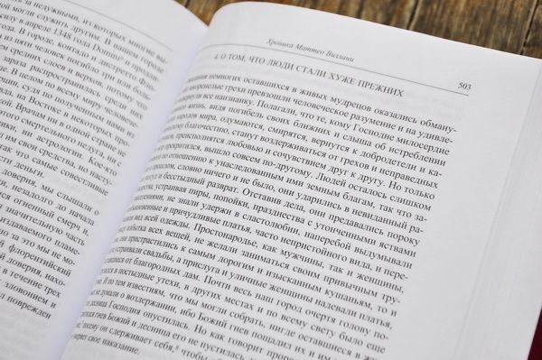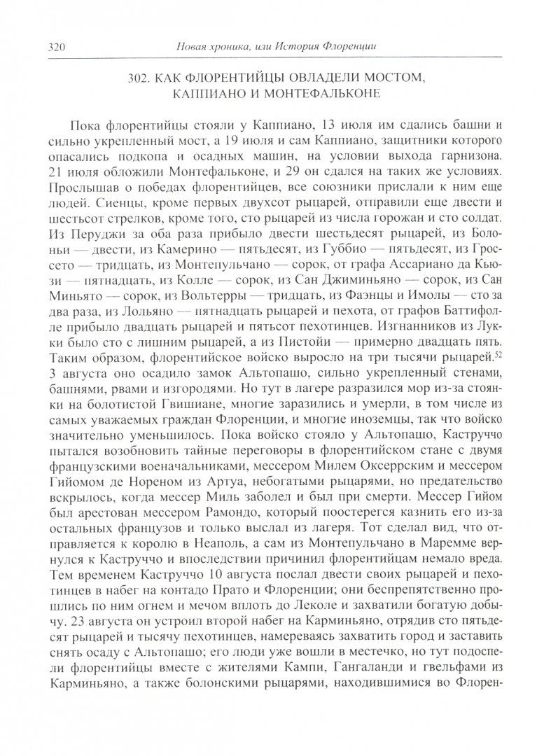 В этой книге, называемой "новая хроника", рассказывается о делах минувших, а более всего о происхождении и начале города Флоренции, обо всех случившихся в нём с тех пор переменах; сочинялась она с 1300 года от воплощения Иисуса Христа.