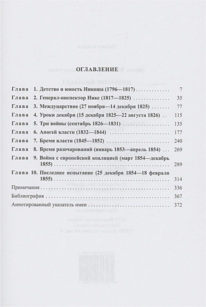 Император Николай I один из самых противоречивых в оценках исследователей правитель России. Одни думают, что он был рачительным государственным деятелем, твёрдой рукой наводившим порядок в стране, другие – реакционером, чья политика привела к поражению в Крымской войне. Автор книги Л. В. Выскочков считает Николая "консерватором с прогрессом", подготовившим проведение Великих реформ, выпавшее на долю его преемника и сына – Александра II. B монографии Николай I показан не только как государь, но и как человек с его сильными и слабыми сторонами. Книга представляет собой детальное описание жизни императора Николая и его семьи.