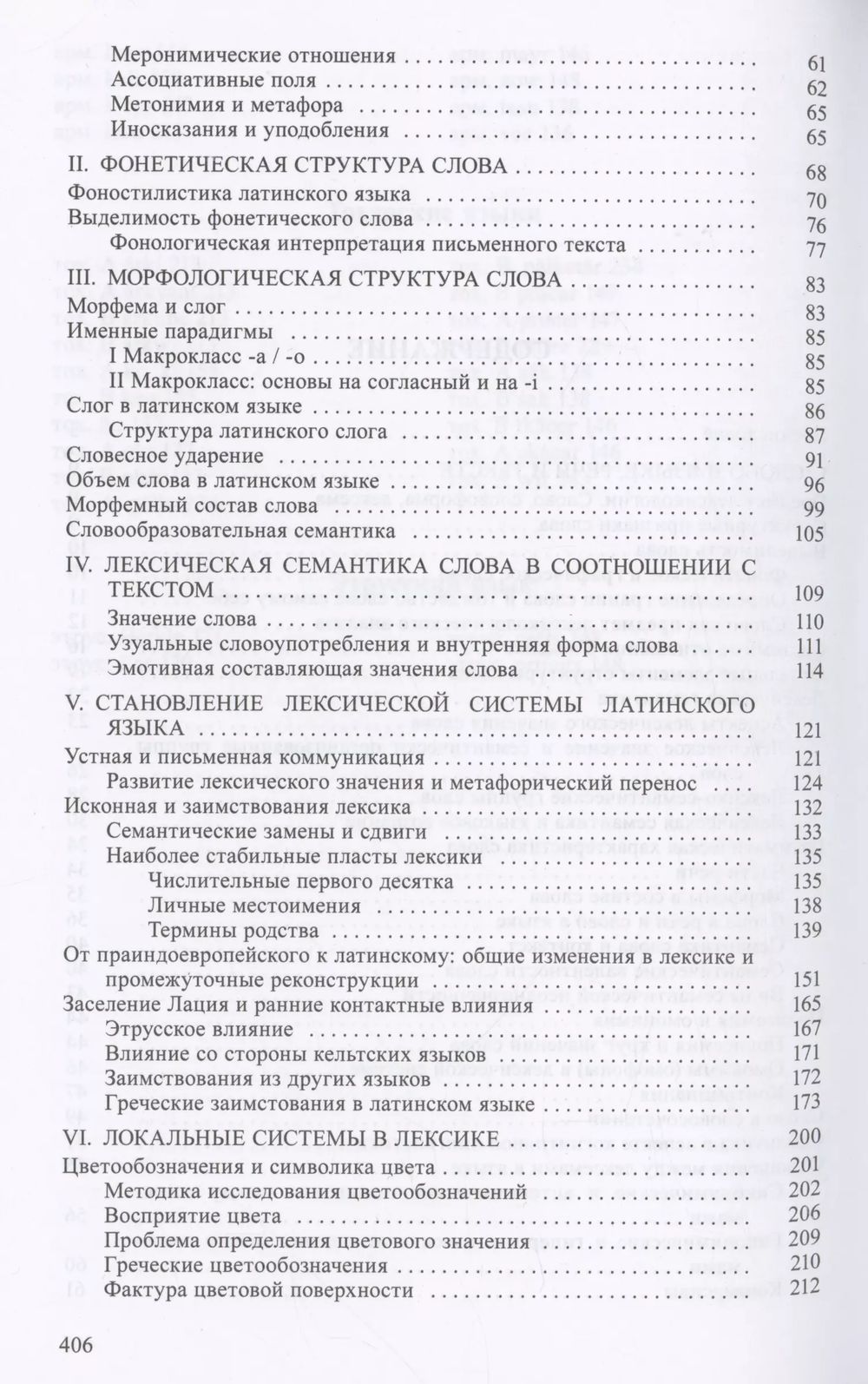 В книге представлен обзор общих проблем лексикологии латинского языка, в частности рассматриваются многообразные связи слов в лексической системе с опорой на достижения сравнительно-исторического языкознания. Динамика системных изменений в языке прослеживается от праиндоевропейского периода к древнейшим латинским эпиграфическим памятникам (VII в. до н. э.), к литературным текстам архаического периода (Плавт, Теренций, Катон) и далее – к классическому периоду и к поздней латыни. В истории развития и пополнения лексического состава латинского языка с древнейшего периода до первых веков н. э. важную роль играли контакты с этрусским, греческим и кельтскими языками, внёсшими значительный вклад в латинскую лексическую систему.