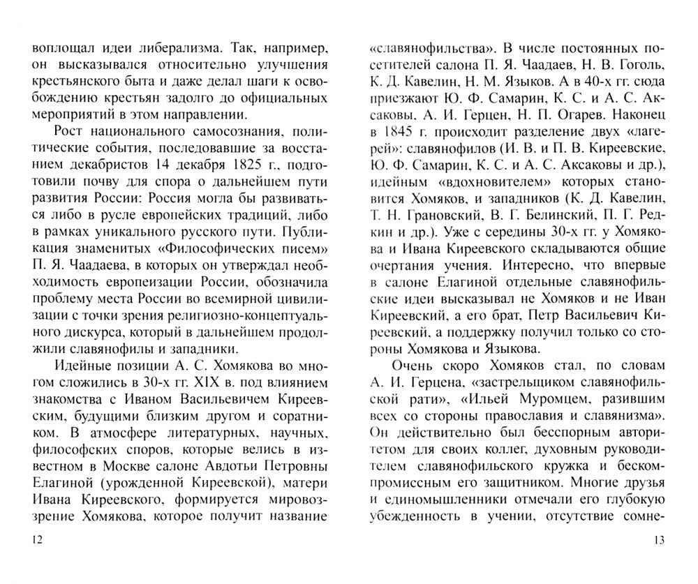 Алексей Степанович Хомяков − русский философ, богослов, поэт, публицист, основоположник и один из главных идеологов славянофильства. Центральная тема его учения − философия истории − представляет собой своеобразную систему, что обусловлено собственными взглядами мыслителя, творчески переработавшего зарубежное и отечественное наследие философско-исторической мысли. В его концепции, сыгравшей несомненную роль в развитии русской исторической науки, взаимодействуют религиозные и реалистические тенденции. Основные темы его рассуждения − проблема перспектив исторического развития России, осмысление типологии русской и западноевропейской культур.
