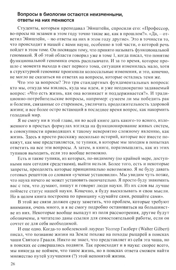 В основу книги положен сильно расширенный курс лекций, которые автор читал студентам старших курсов биологического факультета Московского государственного университета им. М. В. Ломоносова. В отличие от тома 1, в котором освещались в основном вопросы структуры и функций геномов и связанных с ними регуляторных молекул, в томе делается акцент на сложные системы, в работе которых геном либо принимает непосредственное участие, либо инициирует их независимое функционирование. В связи с этим внимание читателя обращается на философские проблемы, связанные с появлением характерных для таких систем непредсказуемых возникающих ("emergent") свойств, и указывается на существование некоторых нерешаемых проблем биологии подобно тому, как в физике существует принцип неопределенности. Большое внимание уделяется и стохастическим процессам, которые также вносят непредсказуемость в функциональные свойства биологических систем. В связи с этим рассматривается роль постоянно возникающих при функционировании генома мутаций в процессах эволюции и при возникновении болезней. Обращается внимание на медицинские последствия этих процессов. Книга содержит обширную библиографию, в том числе самые современные оригинальные или обзорные статьи. Для преподавателей, студентов и аспирантов биологических факультетов вузов, а также широкого круга специалистов, работающих в области биологии, биотехнологии и биомедицины.