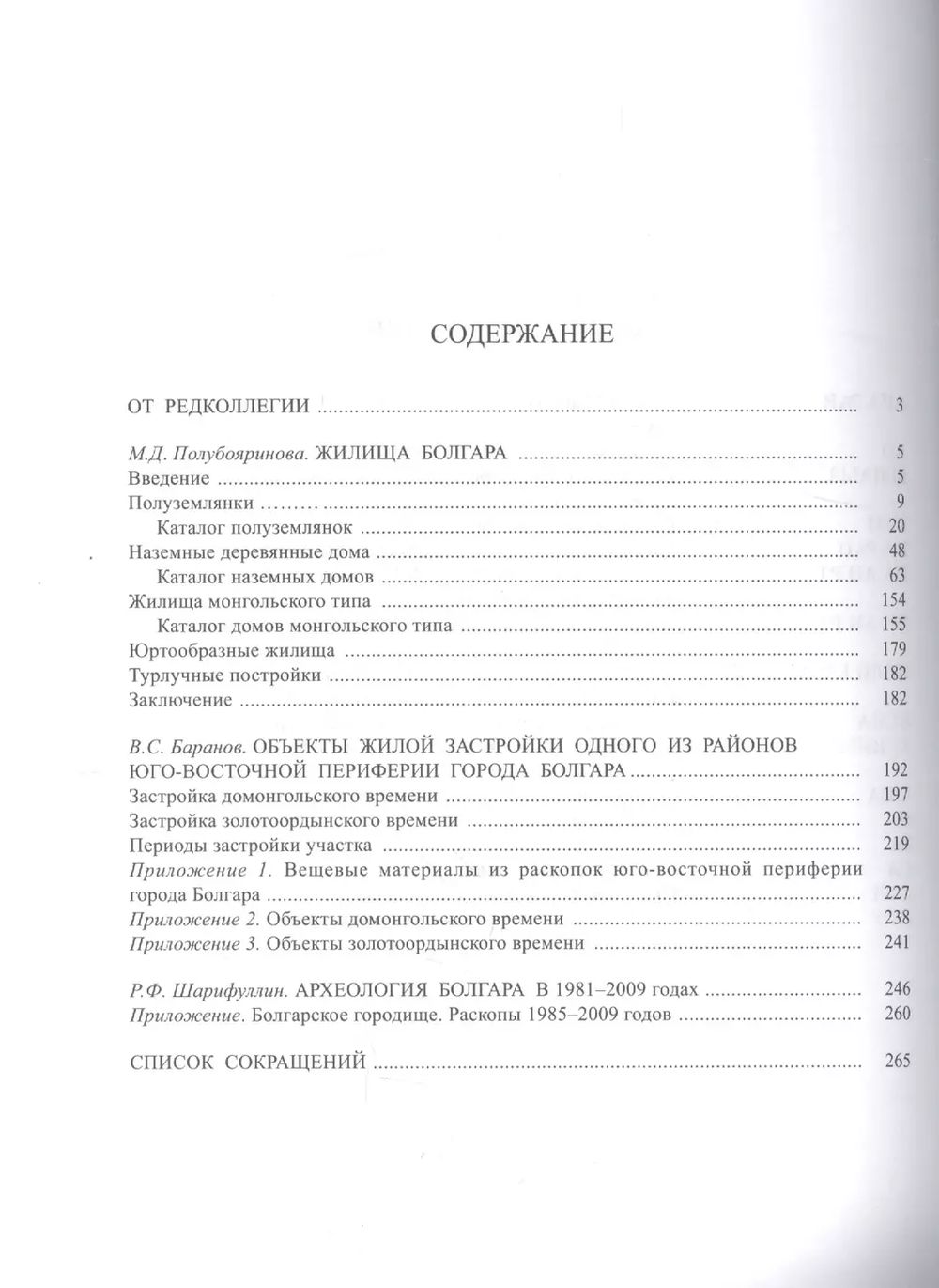 Книга продолжает публикацию материалов археологических раскопок Болгарского городища – остатков одной из столиц средневекового государства Волжская Болгария. Том посвящён болгарскому домостроению, выделению отдельных типов жилищ с локализацией на территории памятника в разные периоды жизни города. Публикуются материалы исследований одного из окраинных поселений Болгара. Кроме того, подводится краткий итог работ Болгарской археологической экспедиции за 1981–2009 гг. Книга содержит большое количество иллюстраций.