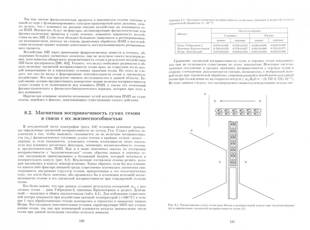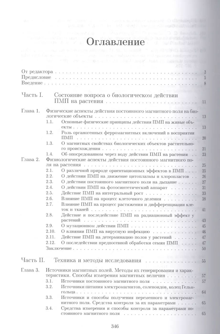 Монография посвящена изучению действия постоянных магнитных полей (ПМП) на растения. Рассмотрены физические, физиологические и биохимические аспекты действия ПМП на биологические объекты. Описаны существующие на данный момент представления о механизмах действия ПМП на растения. Проведён критический анализ массива литературы, посвящённой данной проблематике за последние 150 лет. В многолетних исследованиях авторов установлено действие слабого ПМП на содержание полярных липидов мембран хлоропластов митохондрий и цитоплазматической, на содержание сахаров, биомедиаторов – ацетилхолина и ацетилхолинэстеразы в листьях растений, на содержание основных катионов Н+, К+, Na+ Mg2+, Са2+, Fe3+. Показано, что действие магнитного поля на растения реализуется на различных уровнях организации, определяя весь их жизненный цикл. Отдельная часть посвящена феномену магнитоориентационных типов, открытому первым автором и заключающемуся в наличии у корнеплодных растений одновидовой популяции двух основных магнитоориентационных типов – северо-южного (СЮ) и западно-восточного (ЗВ), плоскость ориентации корневых борозд которых проходит вдоль или поперёк магнитного меридиана, с различающейся реактивностью и реакцией на ПМП.