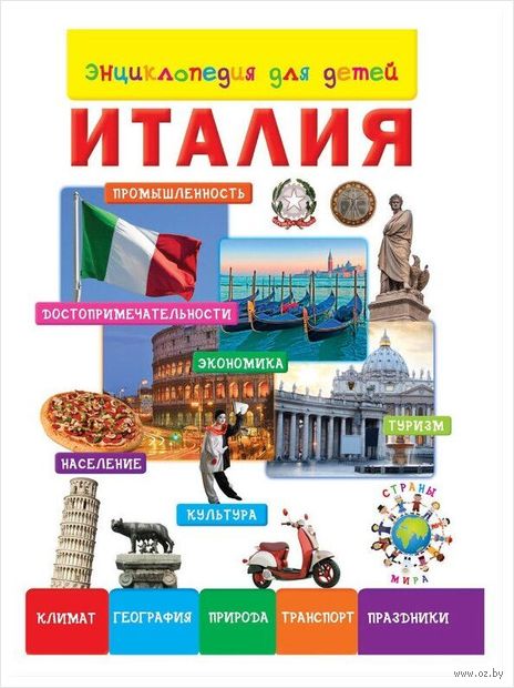 Италия – одна из самых романтичных и посещаемых стран мира. Каждый уголок этой страны неповторим и уникален. Италия – муза для художников и поэтов, ее воздух пропитан атмосферой творчества и свободы. Италия – это страна-музей, бережно хранящая следы могучей Римской империи и многочисленные культурные традиции. Созерцая полуразрушенный, обагренный кровью тысяч гладиаторов, но по-прежнему величественный Колизей, глядя на пышные строения Ватикана, путешествуя по каналам Венеции или осматривая любые другие достопримечательности Италии, вы не ощущаете потребности возвращения в бренный мир с его безликими зданиями и бешеным ритмом жизни. В этой книге собрано все самое интересное об этой стране – от памятников архитектуры до национальной кухни.