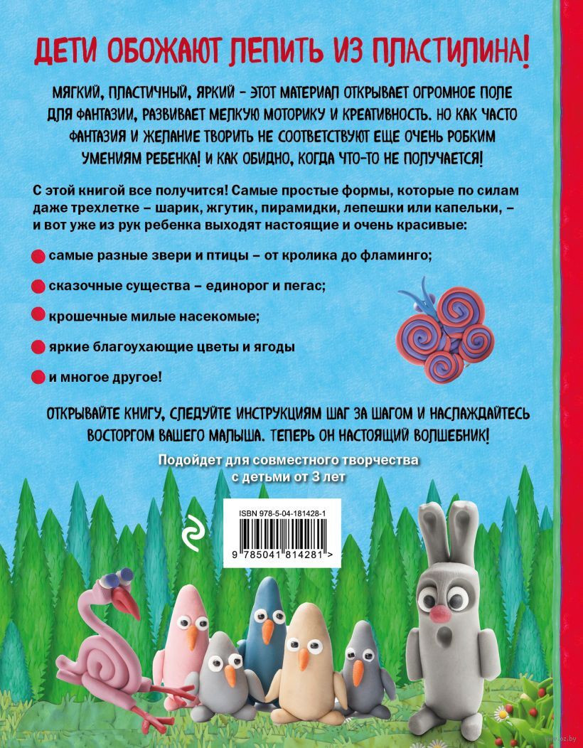 Хотел бы ваш малыш слепить из пластилина обитателей чудесного волшебного леса? Скачущих туда-сюда кроликов, грациозных ярких фламинго, множество цветов, насекомых и даже единорога, бегущего по радуге? Тогда это прекрасное красочное пособие определенно для вас!